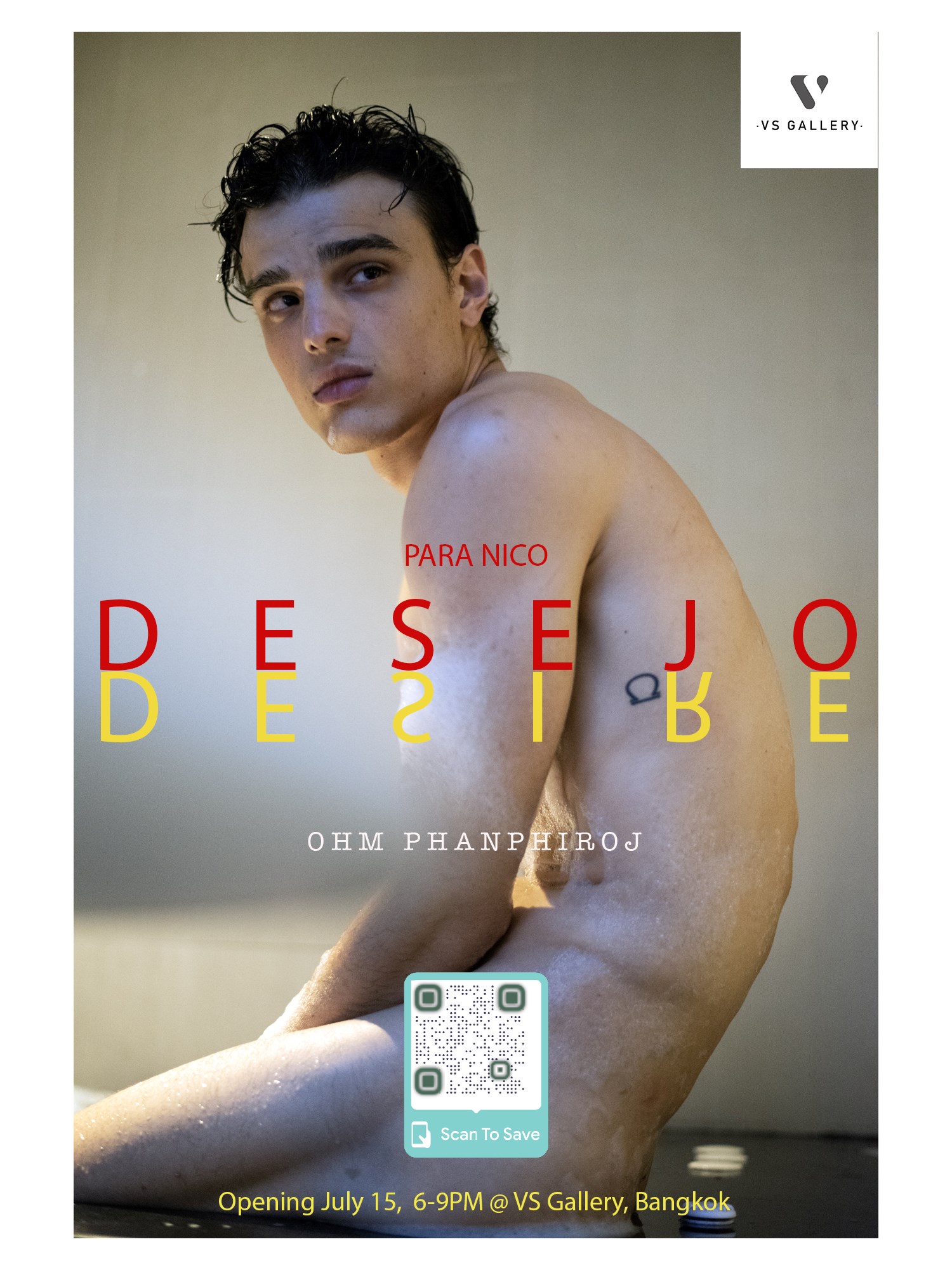 โอม พันธุ์ไพโรจน์ ตีความ "Desire" และนำเสนอออกมาด้วยผลงานสองภาคที่เกี่ยวพันกัน นิทรรศการส่วนแรกมีชื่อว่า “Desejo, para Nico” เป็นคอลเล็กชันภาพถ่ายอีโรติกที่ชวนฝันของ Nico นายแบบหนุ่มผู้ที่ศิลปินหลงใหลและบูชาอย่างสนิทสนมและยาวนาน ในฐานะแรงบันดาลใจของเขา โอมจับคู่ภาพถ่ายเหล่านี้กับจดหมายบทกวีที่เขียนเป็นภาษาโปรตุเกส ซึ่งโอมตั้งใจให้ Nico อ่านเพียงตนเดียวเท่านั้น ในงานชุดนี้ ผู้ชมจะเข้าไปแอบดูช่วงเวลาที่ใกล้ชิดที่ศิลปินแสดงออกถึงความปรารถนาที่ตนมีต่อคนอีกคน