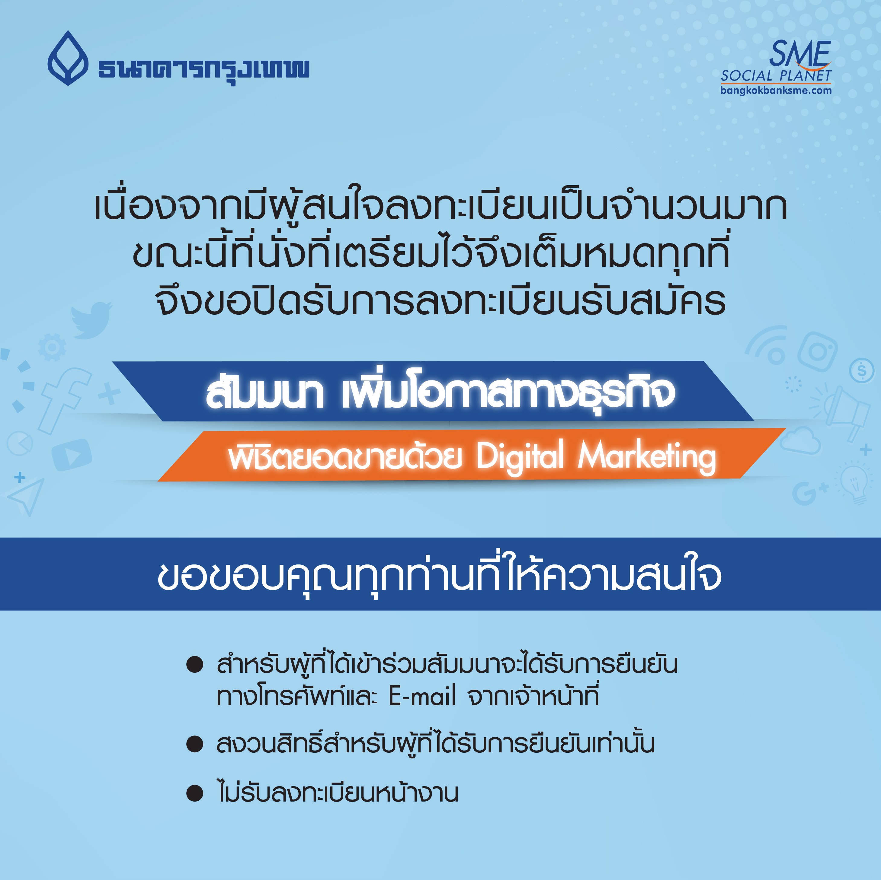 สัมมนาเพิ่มโอกาสทางธุรกิจ พิชิตยอดขายด้วย DIGITAL MARKETING