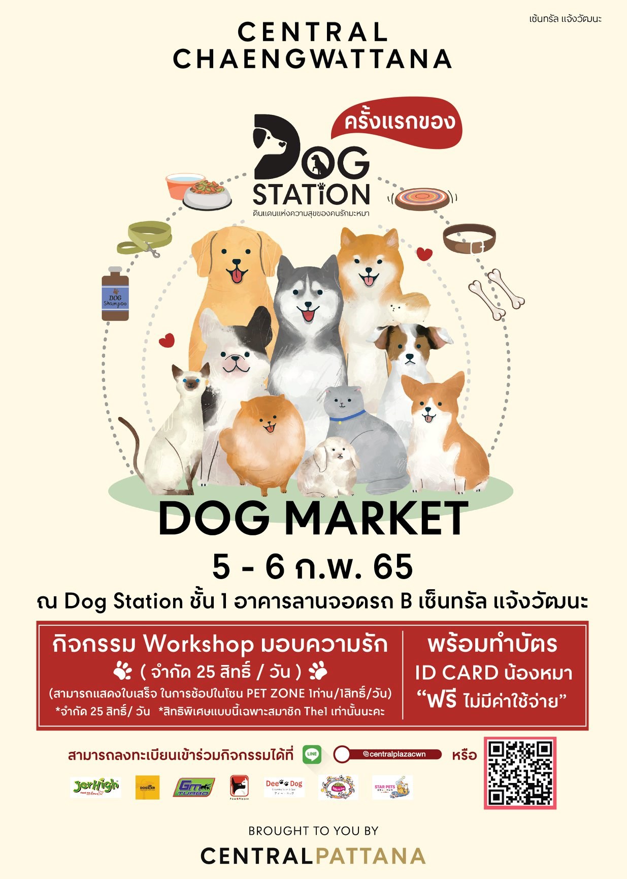 มาแล้วสำหรับคนรักน้องหมากับงาน "DOG MARKET" พบกับร้านค้าขายสินค้าสำหรับสัตว์เลี้ยง...ไปช้อปกันได้เลย ร้าน Nelly Pet Shop ร้าน Nelly Pet Wellness Center ร้าน Star Pets ร้าน Dee Dog เพจ หมากระสอบ ร้าน 100% Petshop ร้าน Rak Nong Pet Shop ร้าน Paka Pet Care ร้าน SweetS Doggie's ร้าน Candy Rabbit ร้าน Wawa Berry ร้าน Paws For All ร้าน Gigwi Thailand ทำบัตร ID CARD น้องหมา ฟรีไม่มีค่าใช้จ่าย! กิจกรรม Workshop มอบความรัก (สามารถแสดงใบเสร็จ ในการช้อปในโซน PET ZONE 1 ท่าน / 1 สิทธิ์ / วัน) *สิทธิพิเศษแบบนี้เฉพาะสมาชิก The1 เท่านั้น วันที่ 5 - 6 ก.พ. 65 เวลา 10.00 - 20.00 น. ณ Dog Station ดินแดนแห่งความสุขของคนรักมะหมา ชั้น 1 อาคารลานจอดรถ B เซ็นทรัลแจ้งวัฒนะ