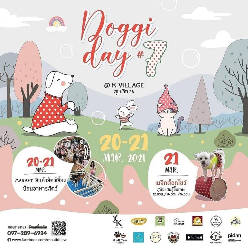 Doggi day #7 วันที่ 20 - 21 มีนาคม 2564 ณ K-Village สุขุมวิท 26 งานที่รวมของที่น่าช็อปไว้มากที่สุดภายในงานกับงาน Doggi day #7 K-Village สุขุมวิท 26 มาช็อปกันได้ตั้งแต่ 10.00 - 20.00 น. เตรียมกระเป๋าสตางค์ไว้ให้พร้อมเลย แทคเพื่อนชวนแฟนแล้วพาลูก ๆ สี่ขาของคุณทั้งน้องหมาน้องเหมียวมาช็อปกันที่งาน เพราะรอบนี้จัดเต็มนอกจากสินค้าสัตว์เลี้ยงแล้วโซนรอบ ๆ งานจุใจกับสินค้า art&craft เอาใจสายช็อปเต็มที่ คุณน้อง ๆ หนู ๆ ก็สนุกเพลินเพลิดได้กับบูธป้อนอาหารสัตว์นานาชนิดและในวันอาทิตย์ที่21 พบกับโชว์สุนัขแสนรู้จากเมจิกด็อกโชว์ ชมฟรี!! ตลอดทั้งวัน มาทำให้ลูก ๆ สี่ขาทั้งน้องหมาน้องเหมียวติดเที่ยวกันเถอะ