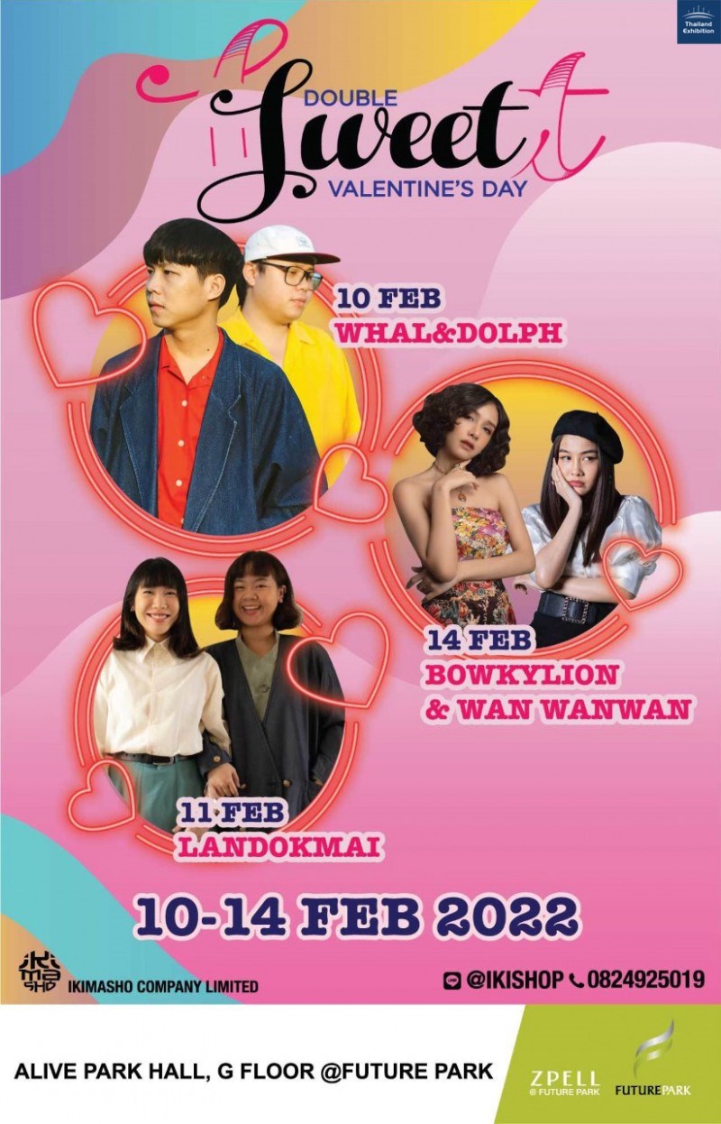 ศูนย์การค้าฟิวเจอร์พาร์ค ชวนมาเช็กอินสร้างความรักให้เบ่งบานด้วยเสียงดนตรี กับงาน "Double Sweet Valentine" พร้อมช้อปของขวัญให้กับคนพิเศษมากมาย อาทิ ช็อกโกแล็ต, ดอกไม้, เครื่องประดับ และอื่น ๆ อีกมากมาย พิเศษสุด กับนักร้องเสียงหวาน WHAL&DOLPH, LANDOKMAI, และ BOWKYLION&WAN WANWAN ระหว่างวันที่ 10 - 14 กุมภาพันธ์ 2565 ณ alive park hall ศูนย์การค้าฟิวเจอร์พาร์ค