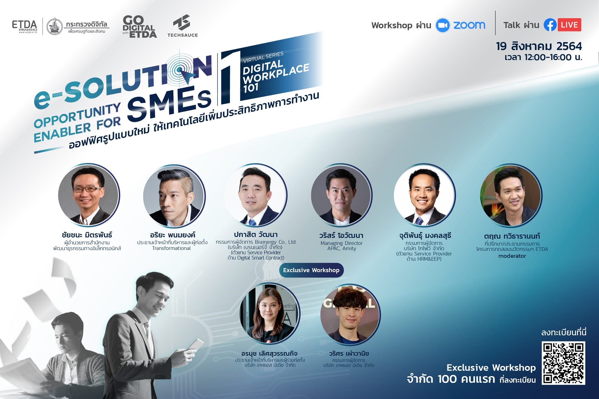 รายละเอียดเพิ่มเติม: https://techsauce.co/tech-and-biz/digital-workplace-for-sme และ https://www.etda.or.th/.../e-Solution-Opportunity-Enabler...