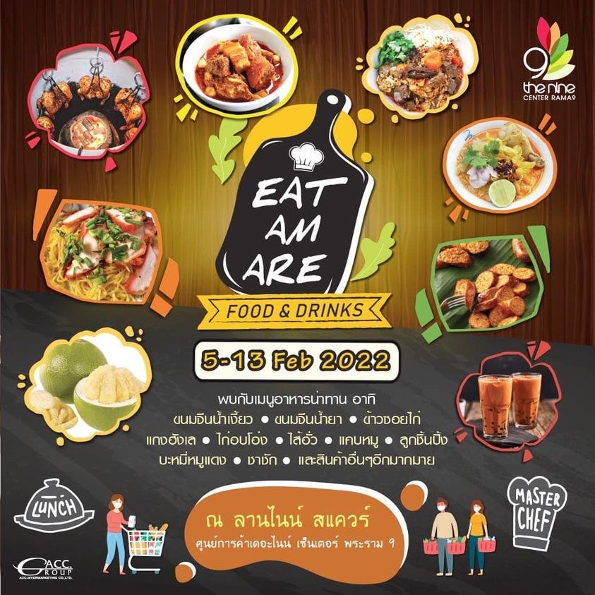 พบกับกิจกรรมจำหน่ายอาหารน่าทาน "EAT AM ARE" ที่เป็นงานรวบรวมอาหารน่าทานต่าง ๆ อาทิ แคปหมู ไส้อั่ว ข้าวซอยไก่ ขนมจีนน้ำเงี๊ยว และอีกหลากหลายเมนู ตั้งแต่วันที่ 5 - 13 กุมภาพันธ์นี้ ณ ลานไนน์ สแควร์ ศูนย์การค้าเดอะไนน์ เซ็นเตอร์ พระรามเก้า