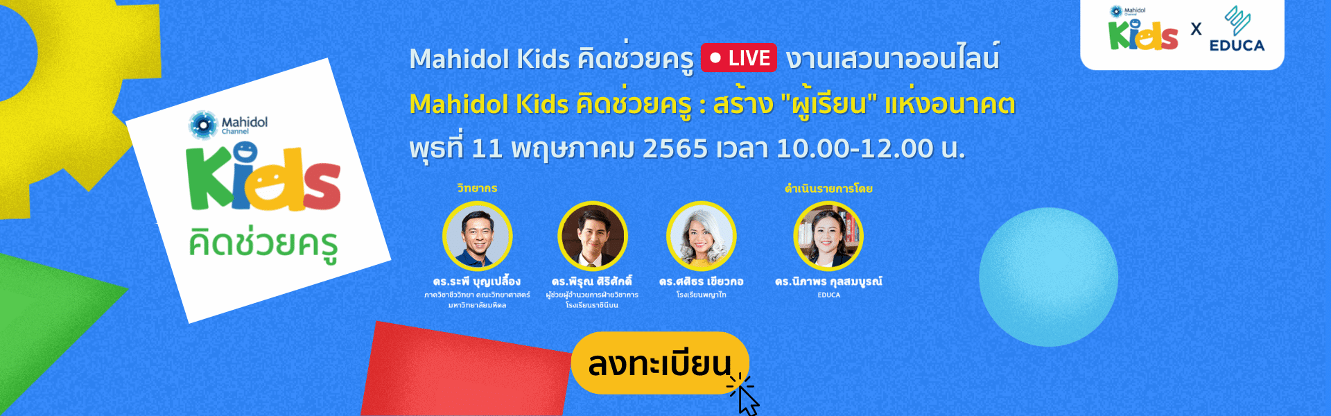 EDUCA x Mahidol Kids คิดช่วยครู I งานเสวนาและอบรมครูออนไลน์พิเศษ