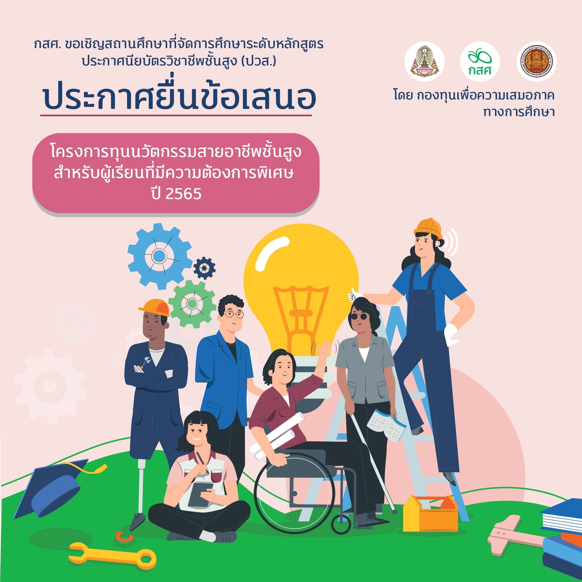 กสศ. ชวนสถานศึกษา ยื่นรับทุนนวัตกรรมสายอาชีพชั้นสูง สำหรับผู้เรียนที่มีความต้องการพิเศษ ปี 65
