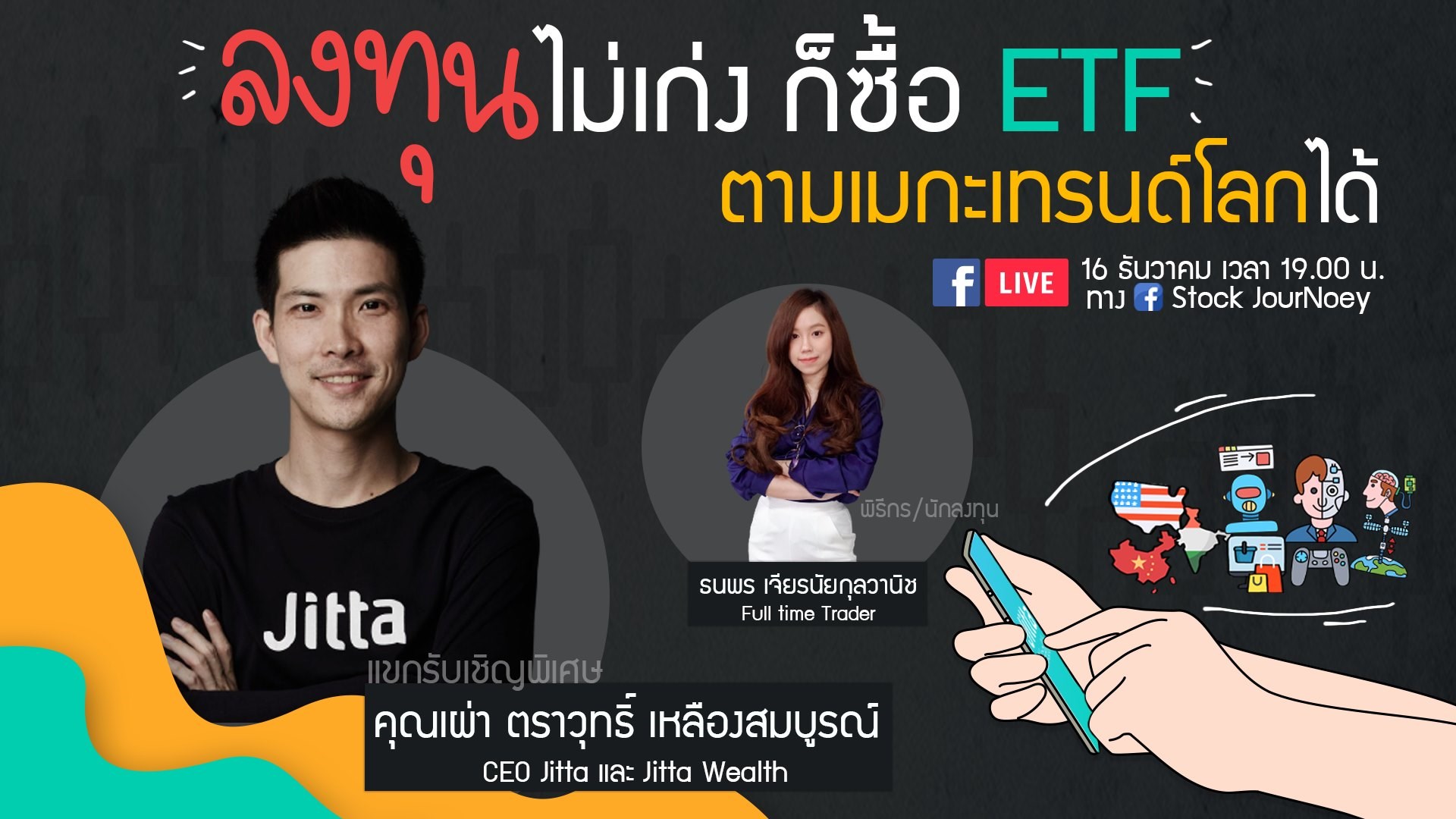 เมื่อ Full-time Trader แห่งเพจ Stock JourNoey สนใจลงทุน Thematic ได้ จึงได้เชิญคุณเผ่า ตราวุทธิ์ เหลืองสมบูรณ์ CEO และผู้ร่วมก่อตั้ง Jitta Wealth ไปพูดคุยเจาะลึกทุกรายละเอียดของการลงทุน ETF ตามเมกะเทรนด์โลก ที่สามารถทำได้ทุกคน ไม่ว่าจะเป็นมือใหม่หรือมือเก๋า พบกันใน Live
