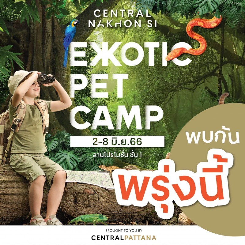 เตรียมตัวผจญภัยในโลกสัตว์แปลกในงาน "EXOTIC PET CAMP" สไตล์แคมป์ปิ้ง เพลิดเพลินไปกับสัตว์แปลกหาดูยาก หลากหลายสายพันธุ์ อาทิ กิ้งก่าอิกัวน่า เคย์แมน จระเข้น้อย หมูฮิบโปแคระ แพะแคระพีคมี่ นกฮูกไวท์เฟส นกกระตั้ว หนูยักษ์คาพีบาร่า สกั้งค์ และนกแก้วหลากหลายสายพันธุ์ ที่จะมาสัมผัสและป้อนอาหารอย่างใกล้ชิด พลาดไม่ได้ 2 -8 มิ.ย. นี้ ลานโปรโมชั้น ชั้น 1 ที่เซ็นทรัล นครศรี