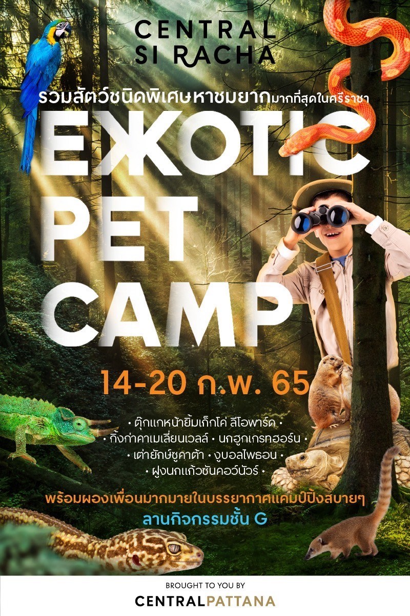 เปิดประสบการณ์ใหม่ให้กับคนรักสัตว์กับงาน Exotic Pet Camp 2022 รวมสัตว์แปลกหาชมยากกว่า 20 สายพันธุ์จากทั่วโลก ยกขบวนมาให้ชาวศรีราชาได้รับชมกันแบบฟรีๆ ในบรรยากาศสไตล์แคมป์ปิ้งสบายๆ เพลิดเพลินกับ Activity Exhibition Zone จัดแสดงสัตว์แปลกหลากสายพันธุ์ อาทิ กิ้งก่า งู แพรี่ด๊อก นกแก้ว เต่า ฯลฯ