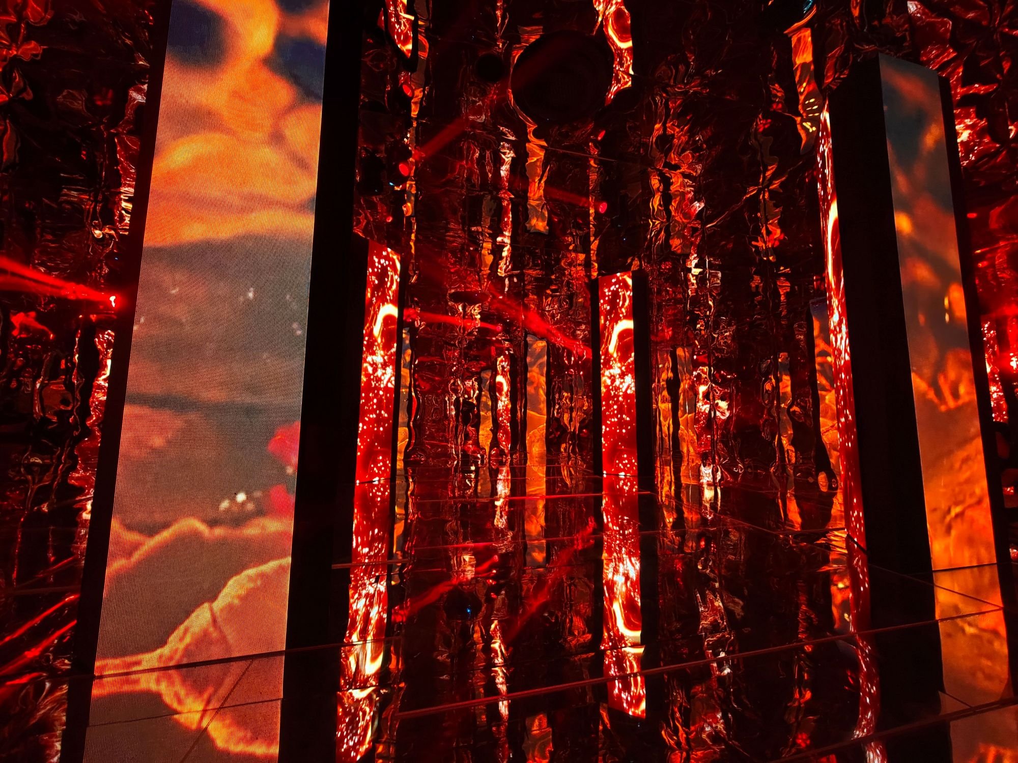 Each space combines tradition, art, and innovation---from temple-inspired art and ancestral heritage to textiles, crafts, photography, and immersive mirrored and projection rooms culminating in a contemporary art gallery.
