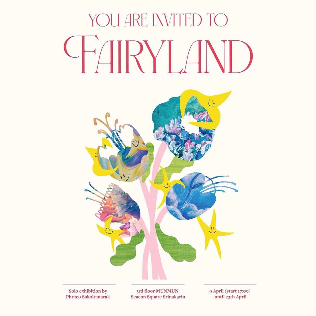 FAIRYLAND by แพรว สกลธนารักษ์ (Phraeo Sakoltanarak) เมื่อต้นปี 2024 แพรวได้ใช้เวลาทบทวนตัวเองและเกิดคำถามขึ้นว่า "แพรวในเวอร์ชันที่ดีขึ้นจะเป็นอย่างไร?" ทำให้แพรวตระหนักว่า การเขียนสิ่งต่างๆที่อยากพัฒนา และทำให้แพรวตระหนักว่า การสำรวจและทำความรู้จักตัวเองเป็นสิงที่สำคัญมาก หากมีโอกาส จัดนิทรรศการสักครั้ง แพรวอยากเชิญชวนทุกคนให้มาร่วมทบทวนตัวเองไปด้วยกัน