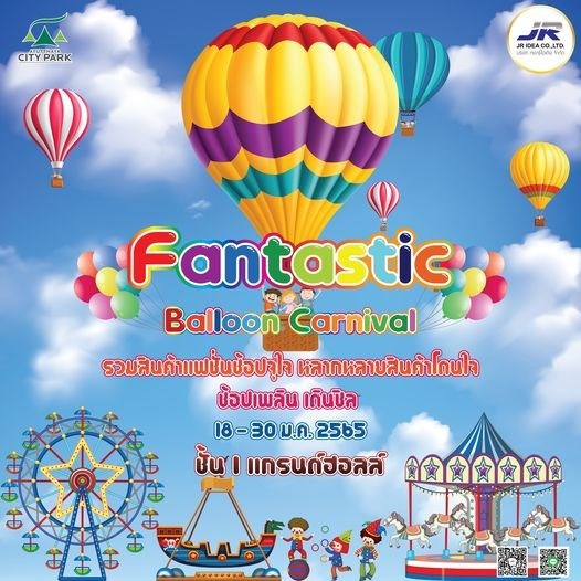 วันที่ 18 - 30 มกราคม 2565 ณ อยุธยาซิตี้พาร์ค คัดมาเน้น ๆ ที่มีของดี ๆ พบเสื้อผ้า และ Accessories ทั้งหมวก กระเป๋า รองเท้าให้เลือกมากมาย พร้อมช้อปของกินอร่อย ๆ ขนมาให้คุณได้ช้อปได้กินกันอย่างจุใจ ในงาน Fantastic Balloon Carnival วันที่ 18 - 30 ม.ค. 65 ณ ชั้น 1 แกรนด์ฮอลล์ อยุธยาซิตี้พาร์ค