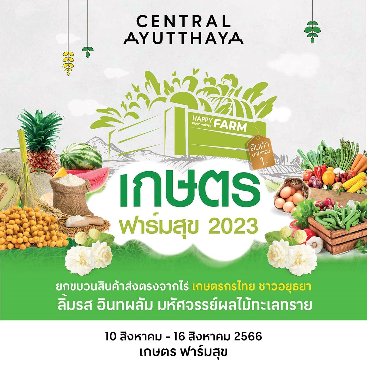 เซ็นทรัลอยุธยา ร่วมกับเกษตรจังหวัดพระนครศรีอยุธยาจัดงาน ‘เซ็นทรัล อยุธยา เกษตร ฟาร์มสุข’ วันที่ 10 - 16 สิงหาคม 2566 ณ ลานกิจกรรม ชั้น G หน้า STARBUCKS เซ็นทรัล อยุธยา
