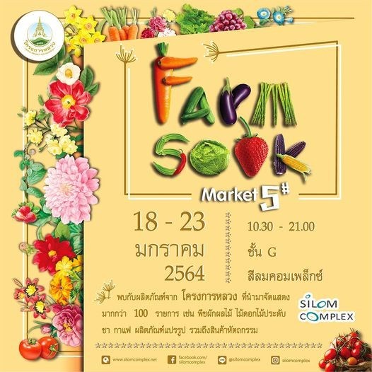 Farmsook Market ครั้งที่ 5 วันที่ 18 - 23 มกราคม 2564 ณ บริเวณ Hall A และ B SilomComplex Shoppingplaza เตรียมพบกับผลิตภัณฑ์ จากโครงการหลวง ผักผลไม้สด ๆ ชา กาแฟและผลิตภัณฑ์แปรรูปมากมาย รวมถึง ร้านอาหารและแฟชั่นสวย ๆ ได้ที่งาน Farmsook Marketครั้งที่ 5 ณ บริเวณ Hall A และ B ตั้งแต่วันที่ 18 - 23 มกราคม 64