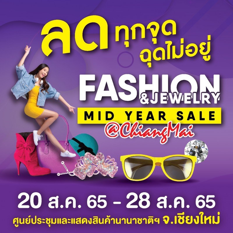 มาเเล้ว! สินค้าเเฟชั่น ไม่ว่าจะเป็นเสื้อผ้า กระเป๋า รองเท้า เครื่องประดับ ขนกันมาลด ในงาน Fashion & Jewelry Mid Year Sale @Chiangmai วันที่ 20 - 28 สิงหาคม 2565 นี้ เวลา 11.00 - 21.00 น. ที่ศูนย์ประชุมเเละเเสดงสินค้านานาชาติฯ จ.เชียงใหม่