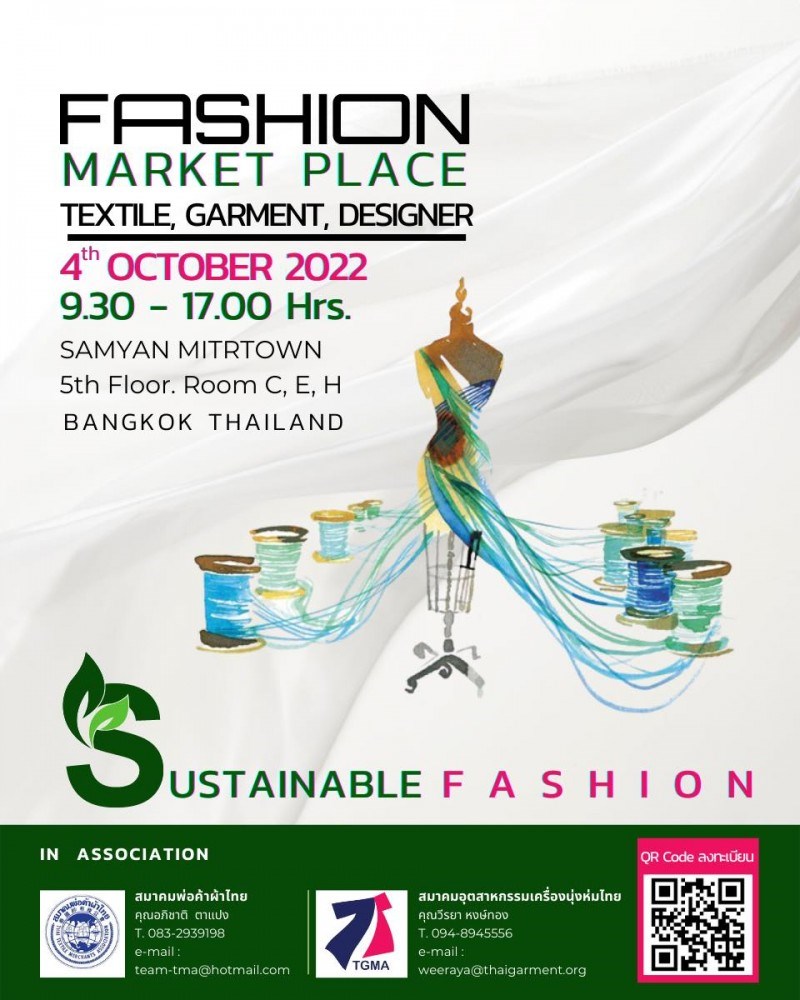 Fashion Market Place 2022 วันที่ 4 ตุลาคม 2565 ณ สามย่านมิตรทาวน์ พบกับงาน "FASHION MARKET PLACE" ที่สามย่านมิตรทาวน์ งานที่รวบรวมผู้ประกอบการไม่ว่าจะเป็นผู้ขายผ้า โรงงานตัดเย็บ โรงพิมพ์ อยู่ในงานเดียวกัน ในงานยังมีกิจกรรมเสวนาที่จัดตั้งแต่เช้าจนถึงเย็น โดย อ.ดร.ศิวรี ในหัวข้อ Sustainble brands ในตลาดแฟชั่น, แบรนด์น้องใหม่อย่าง Maddy Hopper ที่จะมาเล่าในสิ่งที่ทำให้แบรนด์เติบโตได้อย่างก้าวกระโดด, ปิดท้ายสัมมนาด้วย พระอาจารย์ พระมหานภันต์ สกพ. - Ven.Napan IBHAP ที่จะมาแชร์แนวคิดการขับเคลื่อนด้วยความยั่งยืนด้วย SDGs ห้ามพลาด วันอังคารที่ 4 ตุลาคม 65 ตั้งแต่เวลา 9.30 - 17.00 น. ณ สามย่านมิตรทาวน์ ชั้น 5 ห้อง C,E,H