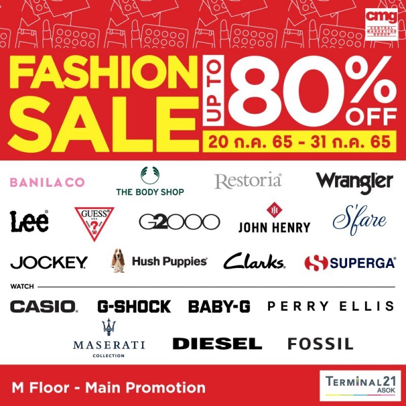 Fashion Sale วันที่ 20 - 31 กรกฎาคม 2565 ณ เทอร์มินอล21 อโศก CMG ขนทัพสินค้ามาให้ช้อปแฟชั่นไอเทมให้จุใจ ลดให้สูงสุดถึง 80% ที่งาน Fashion Sale @Terminal 21 Asok เริ่ม 20 - 31 ก.ค. 2022 ที่โซน Promotion, ชั้น M - Paris, Terminal21 Asok