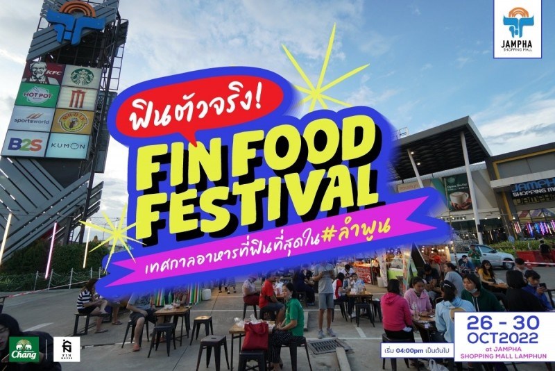 Fin Food Festival ตัวจริง กลับมาทวงบังลังก์ความฟินแล้ว! กับกว่า 60 ร้านเด็ดร้านดังทั่วประเทศ และร้านใหม่อีกเพียบ ที่จะมาเสิร์ฟความอร่อย ให้ชาวลำพูนได้ตะลุยกิน ฟิน non-stop มากินให้พุงแตกกันไปข้างนึง พร้อมลานฟังเพลงสุดชิลล์ให้คุณได้ฟินตลอดทั้งคืน เริ่ม 26 - 30 ต.ค. 65 เวลา 16.00 น.เป็นต้นไป ณ แจ่มฟ้า ช้อปปิ้งมอลล์ ลำพูน รายละเอียดเพิ่มเติม โทร. 065-6155946 Add line@ : @finmarket (คลิก : https://bit.ly/3oEhjpz) Facebook : Fin Market