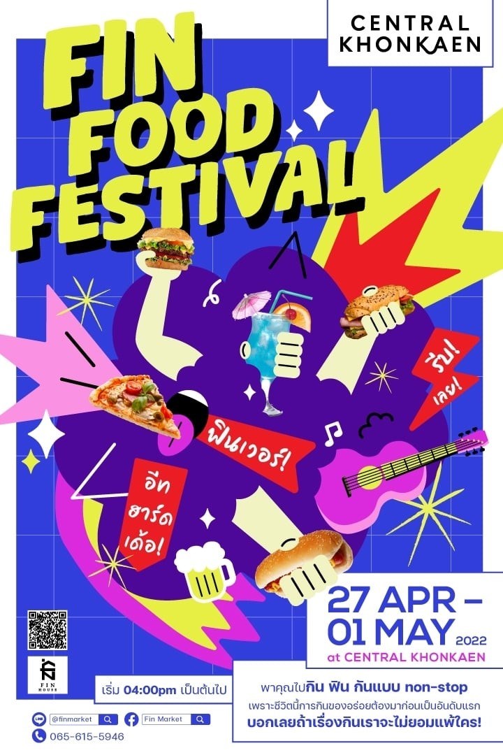 มาแล้ว! Fin Food Festival พาคุณไปฟิน กิน กันแบบ non-stop สายกินตัวจริงห้ามพลาด! กับกว่า 60 ร้านดังทั่วประเทศ ที่ขนกว่า 100 เมนูเด็ดมาเสิร์ฟให้คุณได้ ฟินเวอร์! มัน อีท ฮาร์ด หลายเด้อสู! เริ่ม 27 เม.ย. - 1 พ.ค. 65 เวลา 16.00 น. เป็นต้นไป ณ เซ็นทรัล ขอนแก่น