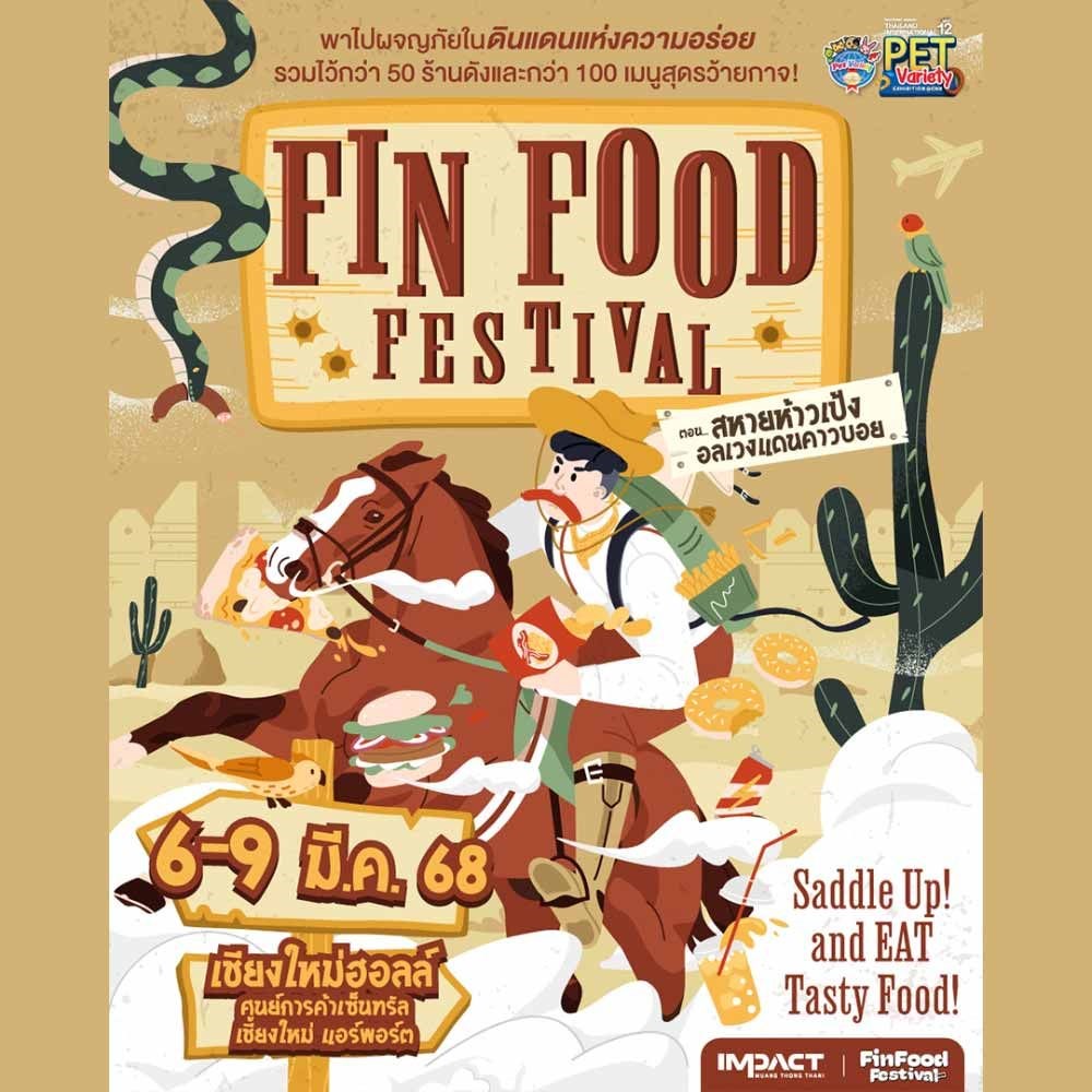 Fin Food Festival x Pet Variety จะพาสายกินไปผญจภัยในดินแดนแห่งความอร่อย รวมไว้แล้วว่า 100 ร้านดังและกว่า 100 เมนูสุดวร้ายกาจ ตอน สหายห้าวเป้งอลเวงแดนคาวบอย