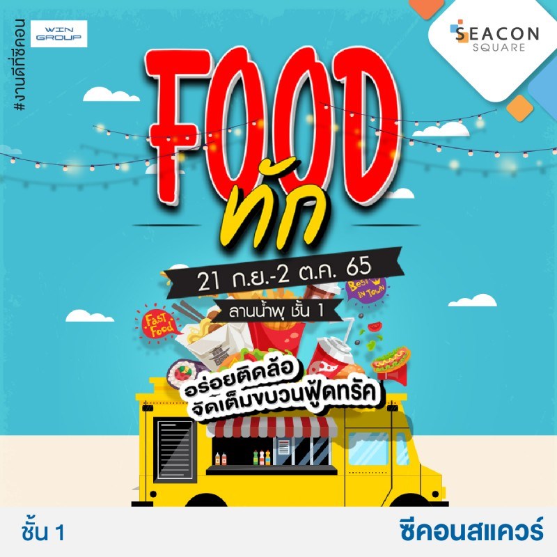 Food ทัก วันที่ 21 กันยายน - 2 ตุลาคม 2565 ณ ซีคอนสแควร์ จัดให้จุก ๆ จนความสุขล้นทะลัก ! กับขบวนคาราวานรถฟู้ดทรัคเจ้าเด็ด เจ้าดัง มัดรวมกันมาไว้ในงาน "Food ทัก" ที่คุณต้องไม่พลาด รวบรวมอาหารจานเด็ด ของดี ของอร่อย ที่มีเอกลักษณ์เฉพาะแบรนด์มาให้คุณได้มาลิ้มลองชิมรสกันอย่างจุใจ มาพบกับคาราวานความอร่อย ในงาน "Food ทัก" ณ ลานน้ำพุ ชั้น 1 ซีคอนสแควร์
