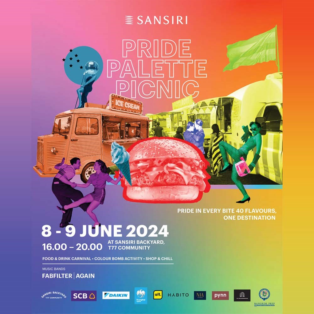 งานนี้แสนสิริจับมือกับ Partner มากมาย เช่น SCB, KTB, DAIKIN ฉลอง Pride Month ส่งเสริมความหลากหลาย ส่งต่อความสุขให้ทุกเพศทุกวัย ผ่านงานเทศกาลอาหารและสินค้า