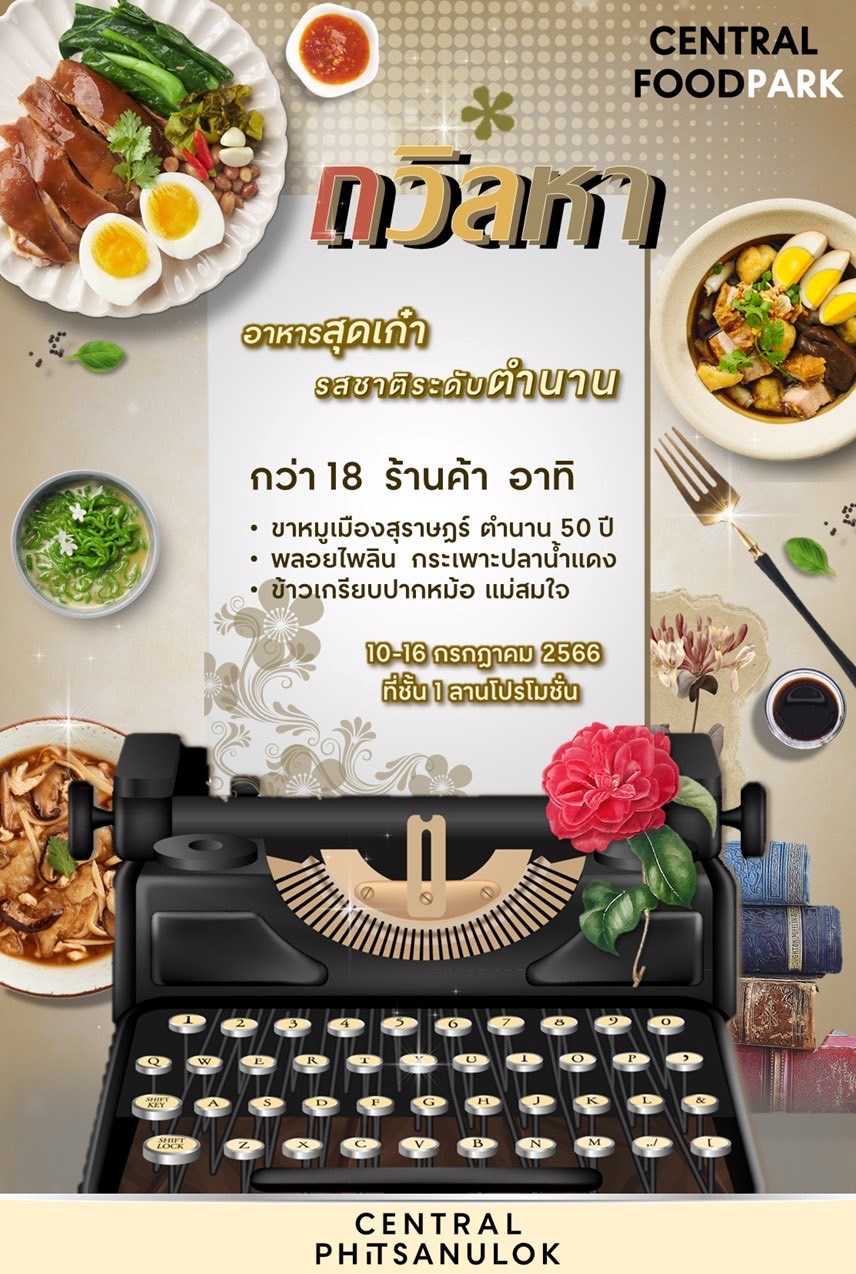 อาหารสุดเก๋า รสชาติระดับตำนาน กับความอร่อย อาทิ ขาหมูเมืองสุราษฎร์ กับตำนานกว่า 50 ปี กระเพาะปลาน้ำแดง พลอยไพลิน ข้าวเกรียบปากหม้อ แม่สมใจ พบกัน ณ ลานโปรโมชั่น ชั้น 1 เซ็นทรัล พิษณุโลก