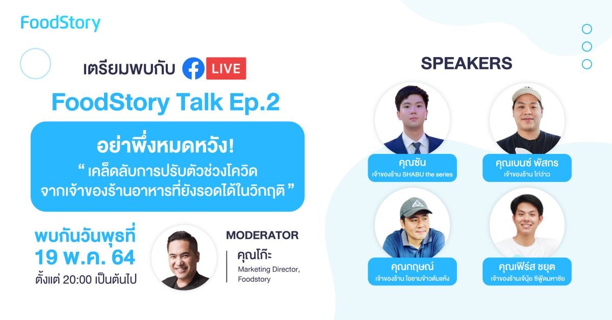 สามารถรับชมได้ที่ Facebook Live เพจ FoodStory วันพุธที่ 19 พฤษภาคม 2564 เวลา 20.00-22.00 น. ใครมีคำถามเกี่ยวกับร้านอาหารเตรียมไว้ให้ดี ห้ามพลาด!