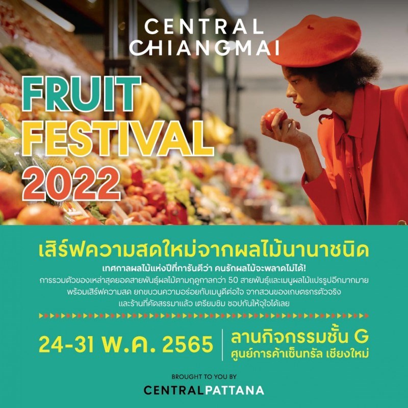 เสิร์ฟความสดใหม่จากผลไม้นานาชนิดเทศกาลผลไม้แห่งปีที่การันตีว่า คนรักผลไม้จะพลาดไม่ได้! การรวมตัวของเหล่าสุดยอดสายพันธุ์ผลไม้ตามฤดูกาลกว่า 50 สายพันธุ์และเมนูผลไม้แปรรูปอีกมากมาย พร้อมเสิร์ฟความสด ยกขบวนความอร่อยกับเมนูดีต่อใจ จากสวนของเกษตรกรตัวจริง และร้านที่คัดสรรมาแล้ว เตรียมชิม ช้อปกันให้จุใจได้เลย วันที่ 24 - 31 พ.ค. 65 ณ ลานกิจกรรมชั้น G ศูนย์การค้าเซ็นทรัล เชียงใหม่ (เซ็นเฟสฯ)
