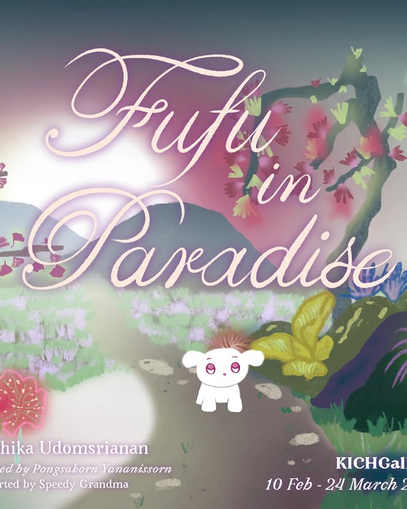 Vijchika Udomsrianan’s first solo exhibition expands on her moving image practice by looking into the vocabulary used in children’s media represented via Fufu in Paradise. Inviting color palettes and friendly forms of characters underlie currents of Thailand’s political concerns regarding access and spaces, both imaginary and physical.
