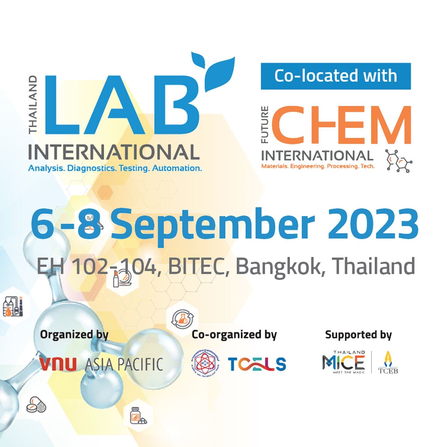 FutureCHEM INTERNATIONAL is an established the new platform for conference and exhibition focusing on innovative solutions for the Chemical Industry. This show is co-located with Thailand LAB INTERNATIONAL, which will take place during 6 – 8 September 2023.