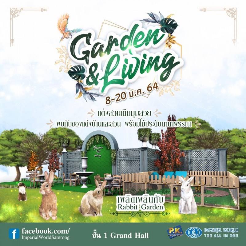 Garden&Living วันที่ 8 - 20 มกราคม 2564 ณ บริเวณ Grand Hall ชั้น 1 ศูนย์การค้าอิมพีเรียล เวิลด์ สำโรง Garden&Living แต่งสวนเติมมุมสวย พบกับของแต่งบ้านและสวน พร้อมไม้ประดับนานาพรรณ เพลิดเพลินกับ Rabbit Garden
