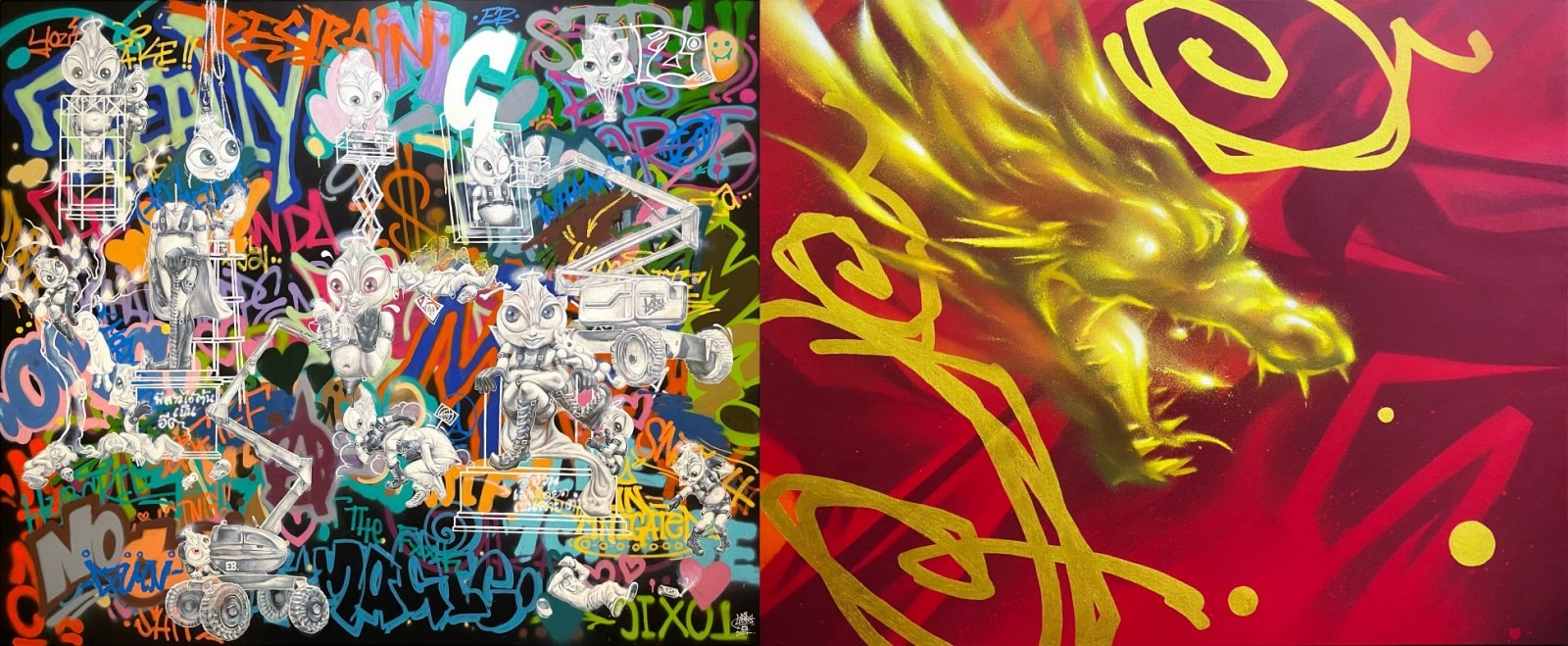 JWD Art Space extends a warm welcome to everyone in celebration of the Year of the Dragon with "Ghidorah," our inaugural Pop-Up Exhibition of 2024. This showcase unveils the narrative of the monstrous creature, depicted through the artistic endeavors of two street artists, LOBOBOY EB (Phansa Buddharaksa) and JOKER EB (Chaiyaboon Banlue). Accompanying them is the artist Tawan Wattuya, who has made a creative contribution to the exhibition. "Ghidorah" is open to the public with free admission from 1 – 31 March 2024 at Private Viewing Room on the 3rd floor of JWD Art Space.
