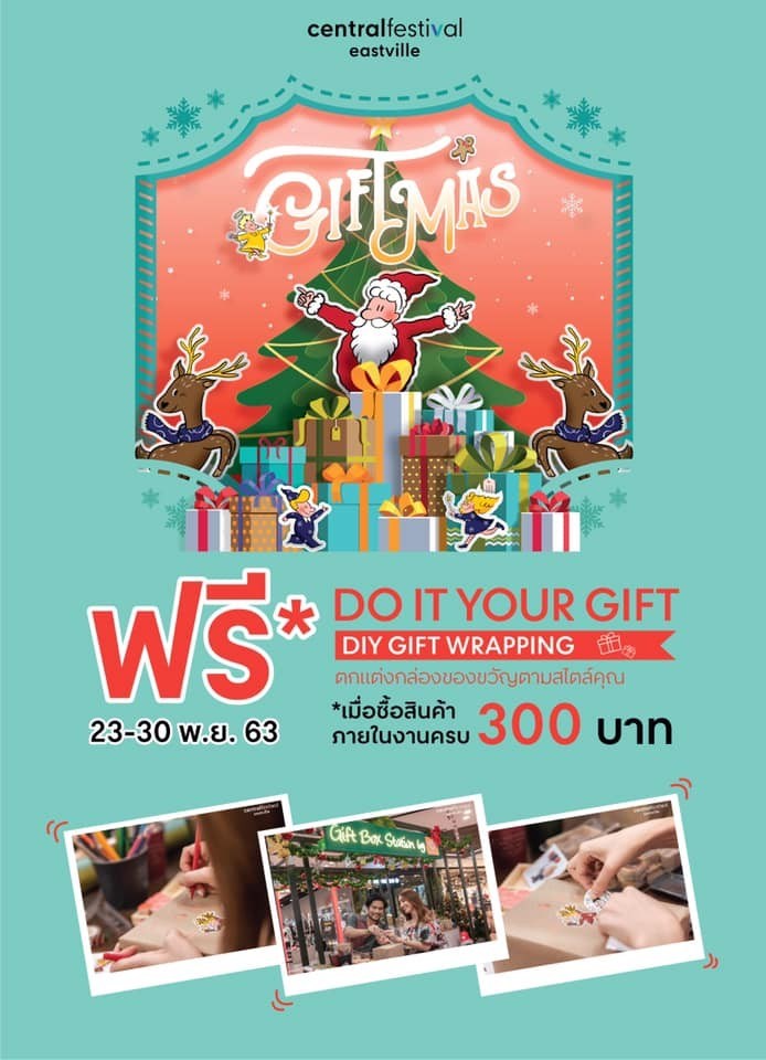 GiftMas วันที่ 23 - 30 พฤศจิกายน 2563 ณลานกิจกรรมชั้น 1 โซน Indoor ศูนย์การค้าเซ็นทรัลเฟสติวัล อีสต์วิลล์ "GiftMas เทศกาลของขวัญ มหัศจรรย์ความสุข" นอกจากของขวัญดีไซน์เก๋ที่มีมาให้เลือกสรรกันอย่างมากมายแล้ว ยังมีกิจกรรมให้ได้ร่วมสนุกไปด้วยกัน DIY GIFT WRAPPING ตกแต่งกล่องของขวัญตามสไตล์คุณ ฟรี!! สายประดิษฐ์ต้องถูกใจสิ่งนี้ ของขวัญมอบให้คนพิเศษทั้งทีจะซ้ำๆ เดิมๆ เหมือนกับคนอื่นๆ ได้ที่ไหน งานนี้ Papery Print ขนขบวนของ ตกแต่ง DiY มาให้คุณได้ ครีเอทดีไซส์กันอีกเพียบ ใส่ใจเลือกของขวัญแล้ว มาใส่ไอเดียตกแต่งกล่องของขวัญแบบไม่ซ้ำใคร ‼️ *เมื่อซื้อสินค้าภายในงานครบ 300 บาท CREATIVE GIFT WORKSHOP ครีเอทของขวัญชิ้นเดียวในโลก ฟรี!! ร่วมสนุกกับกิจกรรมปลูกต้นไม้ในกระถางคอนกรีตดีไซน์ By MINI-D มูลค่า 150 บาท *เมื่อซื้อสินค้าภายในงานครบ 500 บาท (ลูกค้าสามารถเลือกกระถางสีที่ชอบ ต้นไม้แบบที่ใช่ แล้วลงมือปลูกด้วยตัวเองเพื่อมอบเป็นของขวัญชิ้นพิเศษให้คนที่คุณรัก) *เฉพาะวันที่ 27-29 พ.ย.63 เท่านั้น* วันนี้ - 30 พ.ย.63 ณ ลานกิจกรรมชั้น 1 โซน Indoor ศูนย์การค้าเซ็นทรัลเฟสติวัล อีสต์วิลล์