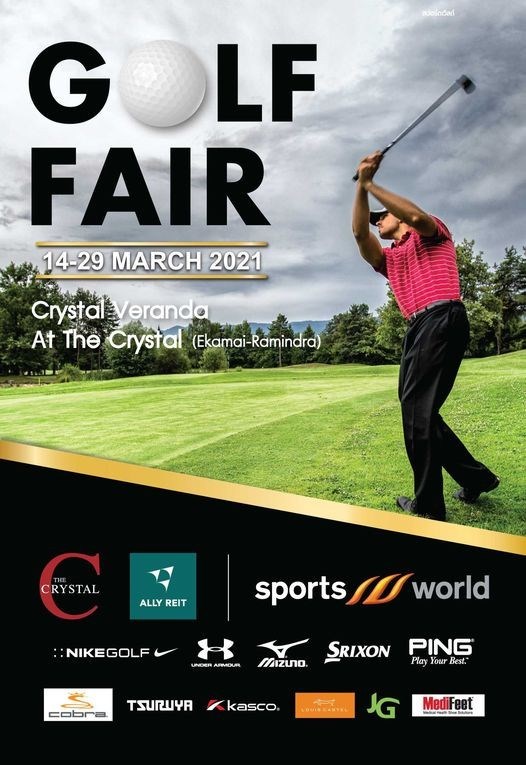 Golf Fair วันที่ 14 - 29 มีนาคม 2564 ณ คริสตัล วีรันด้า ชั้น 1 เดอะ คริสตัล เอกมัย-รามอินทรา Golf Fair ที่สุดของงานกอล์ฟแห่งปี 2021!! ลดสูงสุด 70% เอาใจนักกอล์ฟ รวบรวมสินค้าอุปกรณ์กีฬากอล์ฟ เสื้อผ้าแฟชั่น รองเท้าและแอคเซสเซอรี่ จากแบรนด์ชั้นนำระดับโลกทั่วประเทศ อาทิ NikeGolf, Under Armour, Ping, Tsuruya Golf, Mizuno, Srixon, ,อันเดอร์อาร์เมอร์ และ Cobra
