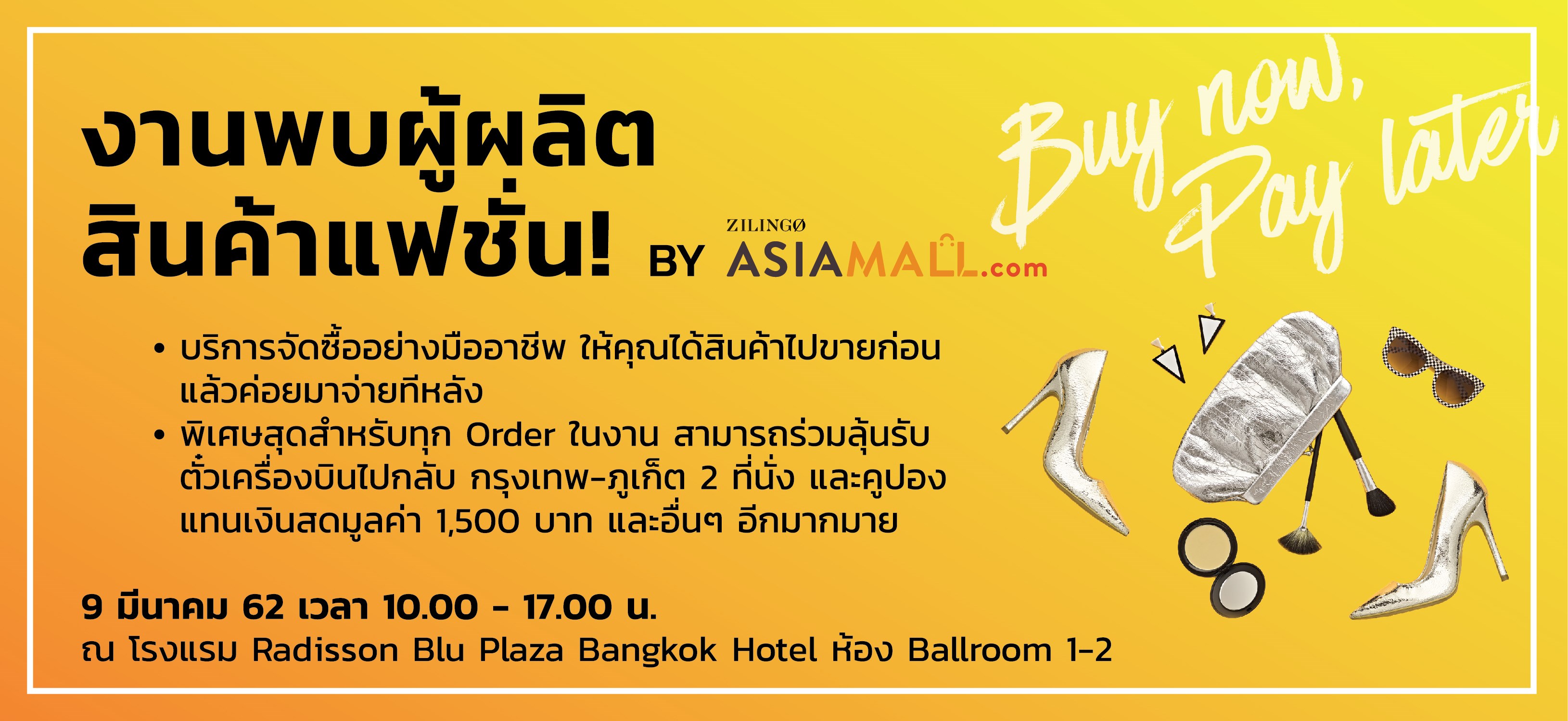 กลับมาอีกครั้ง!! กับงานที่รวบรวมโรงงานผลิตสินค้าชั้นนำไว้มากที่สุดของประเทศไทย เพื่อคุณพ่อค้าแม่ค้าโดยเฉพาะ พร้อมกับโปรโมชั่นสุดพิเศษ สั่งสินค้าไปขายได้ก่อน โดยยังไม่ต้องจ่ายเงิน บริการน้องใหม่จาก Zilingo : Buy now, Pay later !!