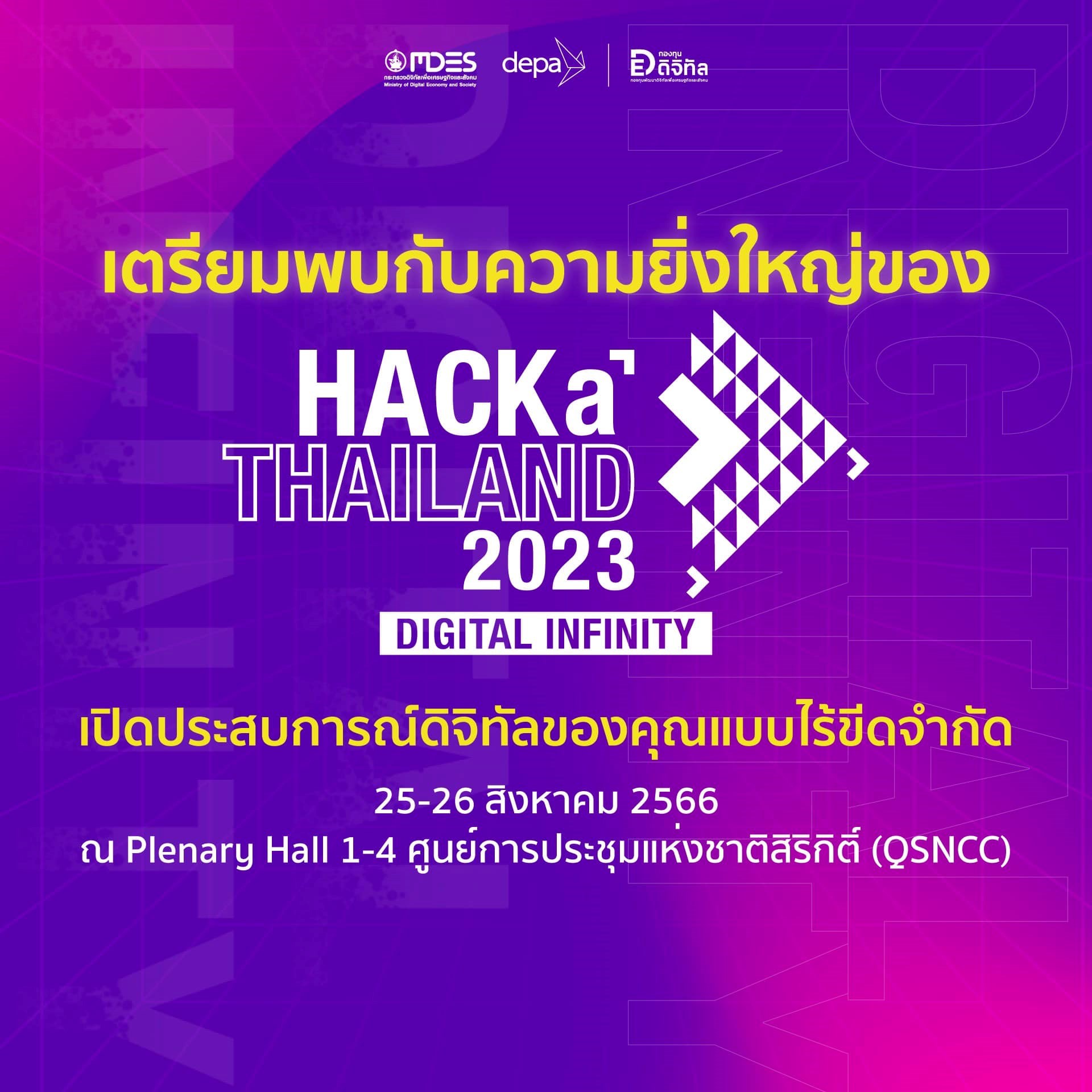 กลับมาอย่างยิ่งใหญ่กับงานมหกรรมแสดงเทคโนโลยีดิจิทัลที่จะพาทุกคนร่วมเปลี่ยนโฉมประเทศไทยให้ล้ำยิ่งกว่าเดิม ใน 𝗛𝗔𝗖𝗞𝗮𝗧𝗛𝗔𝗜𝗟𝗔𝗡𝗗 𝟮𝟬𝟮𝟯: 𝗗𝗜𝗚𝗜𝗧𝗔𝗟 𝗜𝗡𝗙𝗜𝗡𝗜𝗧𝗬 เนรมิตพื้นที่กว่า 6,400 ตารางเมตร สู่โลกดิจิทัลที่คุณสัมผัสได้ เตรียมพบกับเทคโนโลยีดิจิทัลรอบด้านที่จะจุดประกายทุกไอเดีย สร้างทุกโอกาสได้อย่างไม่มีที่สิ้นสุดด้วยเทคโนโลยีดิจิทัล