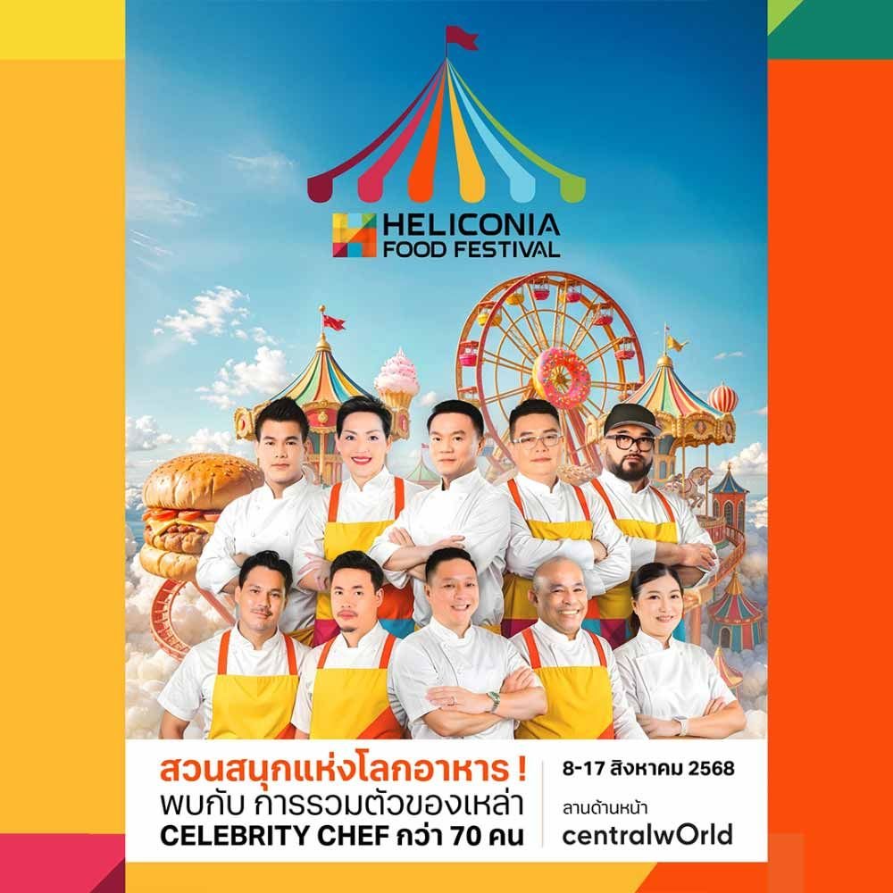 Heliconia Food Festival เทศกาลอาหารสุดยิ่งใหญ่แห่งปี ที่รวมเหล่า Celebrity Chef กว่า 70 คน จากรายการ มาสเตอร์เชฟฯ, เฮลล์คิทเช่น, ท็อปเชฟ, เชฟกระทะเหล็กประเทศไทย, The Restaurant War Thailand ศึกพ่อค้าซ่าแม่ค้าแซ่บ และ The Spoon ช้อนทองคำ