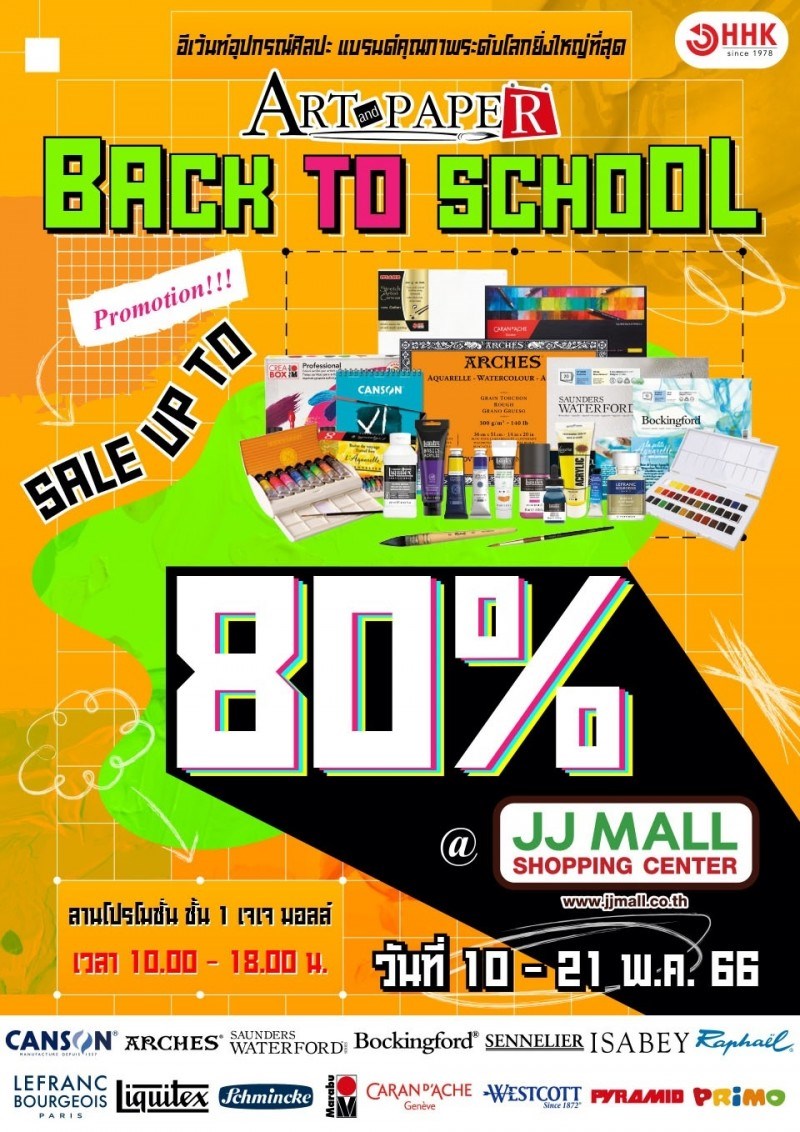 Back To School ! เตรียมพร้อม ต้อนรับเปิดเทอม...กับงาน Art ครั้งยิ่งใหญ่! ชวนเพื่อนๆมาช้อป อุปกรณ์ศิลปะสินค้าสาย Art แบรนด์ดังของแท้ ยกขบวนอุปกรณ์ศิลปะมากกว่า 10,000 SKU ให้ได้ช้อปกันแบบจุใจ กับงาน HHK Art and Paper รวมอุปกรณ์สาย Art แบรนด์ดังสุดพรีเมี่ยม พร้อมโปรโมชั่นสุด Exclusive ในงานพบกับสินค้าใหม่ ระดับ World Class เชิญทดลองคุณภาพด้วยคุณเองได้แล้ว