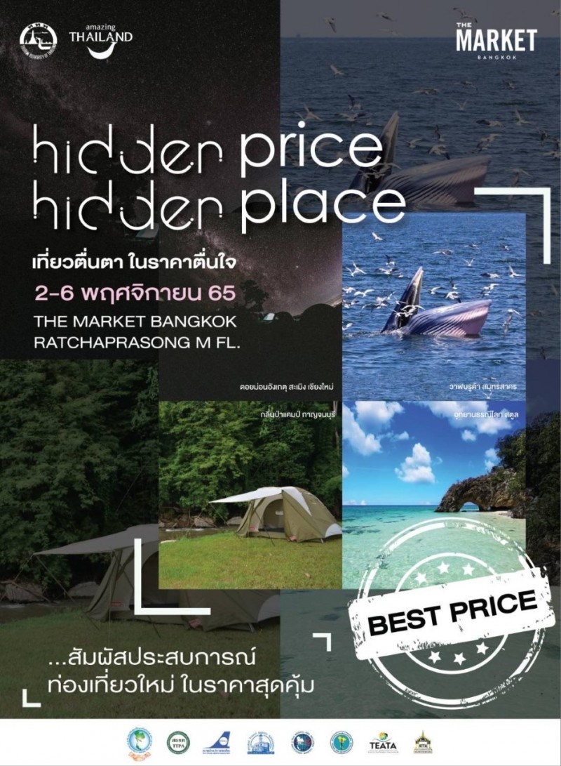 มาร่วมเปิดประสบการณ์ท่องเที่ยวเส้นทางใหม่ กับทริปสุดพิเศษ ในราคาสุดคุ้ม! ที่นี่! ที่เดียว! วันที่ 2-6 พ.ย นี้ "HIDDEN PRICE HIDDEN PLACE" ชั้น M ศูนย์การค้า The Market Bangkok ราชประสงค์