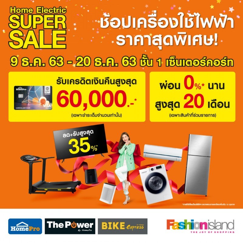 Home Electric Super Sale วันที่ 9 - 20 ธันวาคม 2563 ณ ชั้น 1 (เซ็นเตอร์คอร์ท) ศูนย์การค้าแฟชั่นไอส์แลนด์ เริ่มแล้ววันนี้ Home Electric Super Sale ได้เวลาช้อบเครื่องใช้ไฟฟ้าใหม่ จัดโปรแรงส่งท้ายปีให้ช้อปเครื่องใช้ไฟฟ้าราคาแสนถูก พร้อมโปรโมชั่นสุดคุ้มอีกมากมาย พิเศษ ในวันพฤหัสที่ 10 ธ.ค. 63 เวลา 11.00 น. รับชมบรรยากาศงานกันแบบสด ๆ ผ่านช่องทาง FB Live: Fashion Island Shopping Mall Home Electric Super Sale ตั้งแต่วันนี้ - 20 ธ.ค. 63 ณ ชั้น 1 (เซ็นเตอร์คอร์ท) ศูนย์การค้าแฟชั่นไอส์แลนด์ หมายเหตุ: ขอความร่วมมือลูกค้าทุกท่าน สวมหน้ากากอนามัยหรือหน้ากากผ้าก่อนเข้าและตลอดเวลาที่อยู่ในศูนย์การค้าฯ ตรวจวัดอุณหภูมิร่างกาย และล้างมือด้วยแอลกอฮอล์ ก่อนเข้าใช้บริการทุกครั้ง