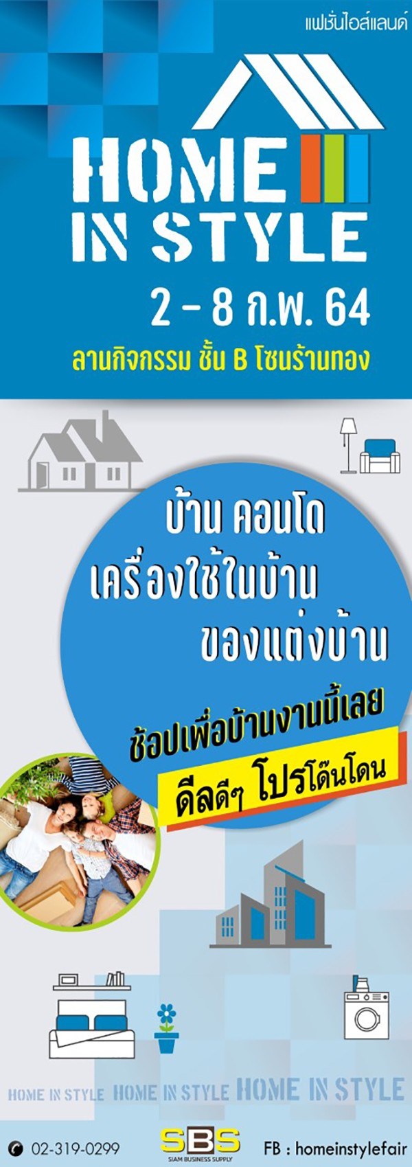 Home & Living in Style วันที่ 2 - 8 กุมภาพันธ์ 2564 ณ ชั้น B โซนร้านทอง แฟชั่นไอส์แลนด์ เพื่อบ้านต้องงานนี้ งานดีดีที่รวบรวมทั้งโครงการบ้าน-คอนโดจากบริษัทอสังหาชั้นนำ เครื่องใช้ในบ้าน ของแต่งบ้าน พร้อมคำแนะนำดีดี ๆ โปรโมชั่นโดน ๆ ที่ทำให้ไลฟ์สไตล์คุณสะดวกสบายยิ่งขึ้น