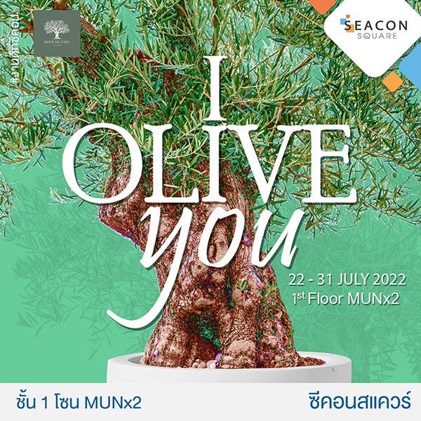 I OLIVE YOU วันที่ 22 - 31 กรกฎาคม 2565 ณ ซีคอนสแควร์ ชวนทุกคนเดินทางเข้าสู่โลกมะกอกโอลีฟ ทำความรู้จักเสน่ห์ของต้นไม้ฟอร์มสวยงาม ดูแลง่าย มีอายุยืนเหมือนเพื่อนคู่ใจสไตล์เรียบง่าย โทนอบอุ่น มีเอกลักษณ์เฉพาะตัวไม่เหมือนใคร แฝงไปด้วยความสิริมงคลสัญลักษณ์แทนชัยชนะ อิสรภาพ และความอุดมสมบูรณ์ คัดสรรจากความรัก โดย Olive De Casa จัดแสดงความยิ่งใหญ่ต้นโอลีฟอายุกว่า 300 ปี ขนมาให้ชมถึง 65 ต้น ทุกต้นผ่านการคัดสรรบรรจงดูแลจนเติบโตแข็งแรงพร้อมส่งมอบให้กับทุกคนที่มาในงาน สัมผัสบรรยากาศธรรมชาติท่ามกลางต้นมะกอกโอลีฟสไตล์คาเฟ่ นั่งชม ถ่ายรูปชิว ๆ หรือเดินช้อปต้นไม้หลากขนาด หลายสายพันธุ์ ให้เลือกซื้อ อาทิ โอลีฟขนาดใหญ่ อายุกว่า 300 ปี มีเอกลักษณ์แต่งทรงแบบ Bonsai, สายพันธุ์ Hojiblanca อายุ 100 ปี, ต้นโอลีฟขนาด 150 ปี สายพันธุ์ Hojiblanca, ต้นโอลีฟขนาด 4 ปี สายพันธุ์ LOllipop และอื่น ๆ อีกมากมาย มาหลงรักต้นมะกอกโอลีฟไปด้วยกัน ในงาน "I OLIVE YOU" วันที่ 22 - 31 กรกฎาคม 2565 ณ ชั้น 1 โซน MUNx2, ซีคอนสแควร์