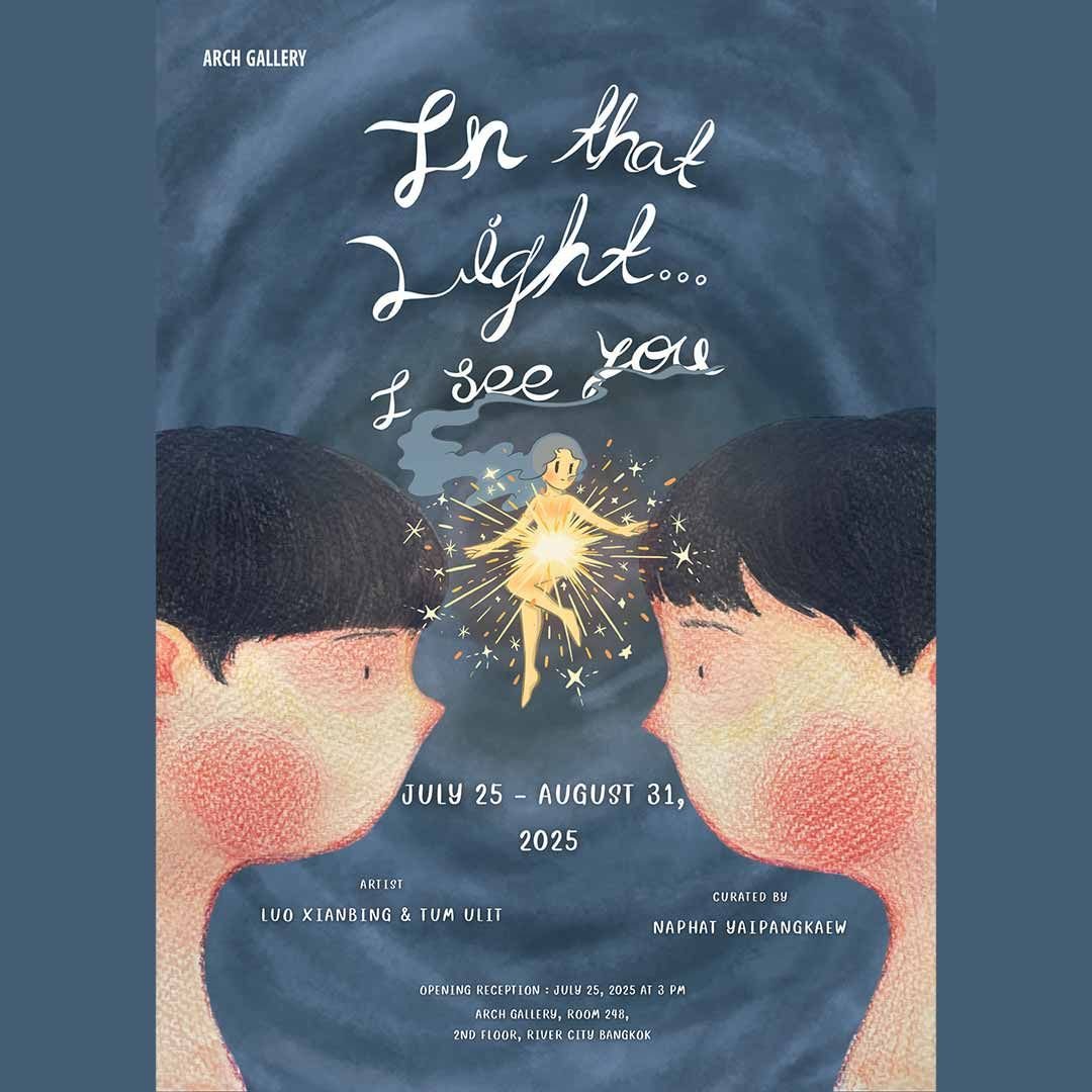 “In That Light … I See You : ในแสงนั้น…ฉันเห็นเธอ” จะจัดแสดงตั้งแต่วันที่ 25 กรกฎาคม - 31 สิงหาคม พ.ศ. 2568 ณ อาร์ช แกลเลอรี่ ห้อง 248 ชั้นที่ 2 ศูนย์การค้า ริเวอร์ ซิตี้ แบงค็อก ขอเชิญร่วมงานเปิดนิทรรศการในวันศุกร์ ที่ 25 กรกฎาคม พ.ศ. 2568 ตั้งแต่เวลา 15.00 น. เป็นต้นไป