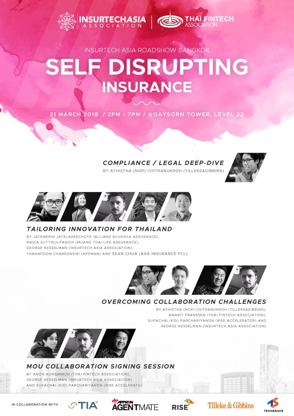 ครั้งแรกในไทยกับงานที่รวมความรู้ด้าน Insurtech ระดับ Asia ภายใต้ชื่องาน INSURTECH ASIA ROADSHOW 2018 ที่ผนึกกำลังจัดงานขึ้นโดย Insurtech Asia Association, Appman, RISE, MCFIVA, TIA, Tilleke & Gibbens และ Thai Fintech Association ซึ่งเป็นงานที่จัดเต็มและอัดแน่นด้วยสาระความรู้จาก Expert และ Influencer ด้าน Insurtech แนวหน้าทั้งในไทยและต่างประเทศ นำทีมโดย George Kesselman ผู้ที่ถูกยกให้เป็น Insurance Influencer อันดับที่ 35 ของโลก, ผู้บริหารที่เกี่ยวข้องด้าน Insurtech และอีกหลายท่าน