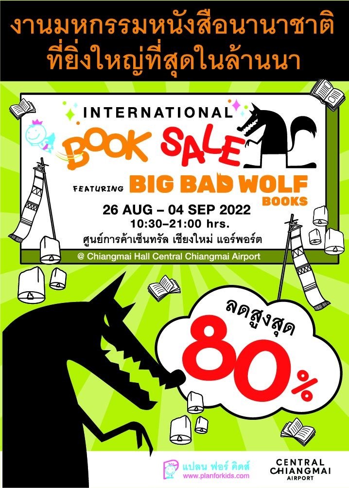 วันที่ 26 สิงหาคม - 4 กันยายน 2565 ณ เซ็นทรัล เชียงใหม่ แอร์พอร์ต เตรียมตัวพบกับงานมหกรรมหนังสือที่ใหญ่ที่สุดในภาคเหนือ "International Book Sale featuring Big Bad Wolf Books" เนรมิตหนังสือกว่า 1 ล้านเล่มให้มาอยู่ในมือคุณ อยากได้แนวไหนล่ะ หนังสือส่งเสริมพัฒนาการเด็ก หนังสือเด็ก หนังสือประวัติศาสตร์ ชีวประวัติ บันเทิง กีฬา สารคดี ท่องเที่ยว วรรณกรรม ตกแต่งบ้าน สถาปัตย์ งานอดิเรก ตำราอาหาร และอื่น ๆ จากนักเขียนและนักแปลทั่วโลก ครบครันทั้งภาษาไทย และภาษาอังกฤษ อ่านได้ทุกเพศ ทุกวัย พบกันวันที่ 26 สิงหาคม - 4 กันยายน 2565 เวลา 10.30 - 21.00 น. ที่เซ็นทรัล เชียงใหม่ แอร์พอร์ต
