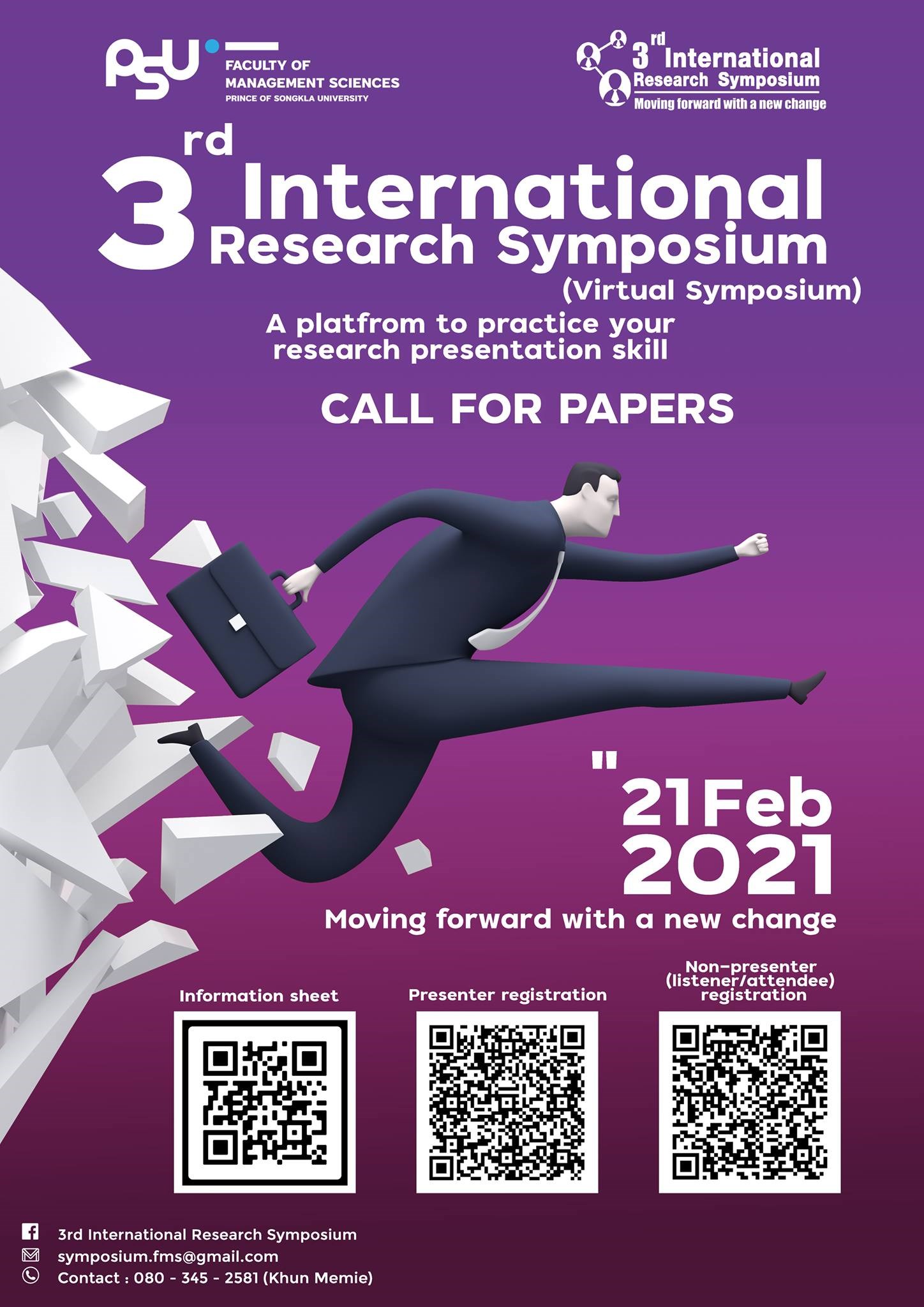 📣 เตรียมพบกับการประชุมเชิงวิชาการรูปแบบ Virtual Symposium กับงาน 3rd international research symposium ✨ โดยครั้งนี้มาในภายใต้ตอนเซ็ปต์ Moving forward with a new change เวทีที่จะยกระดับการนำเสนองานวิจัยและโปรเจกต์ของคุณ พร้อมรับฟังข้อเสนอแนะจากผู้ทรงคุณวุฒิที่มากด้วยประสบการณ์ เพื่อพัฒนาทักษะงานวิจัยของคุณให้พัฒนาไปอีกขั้น