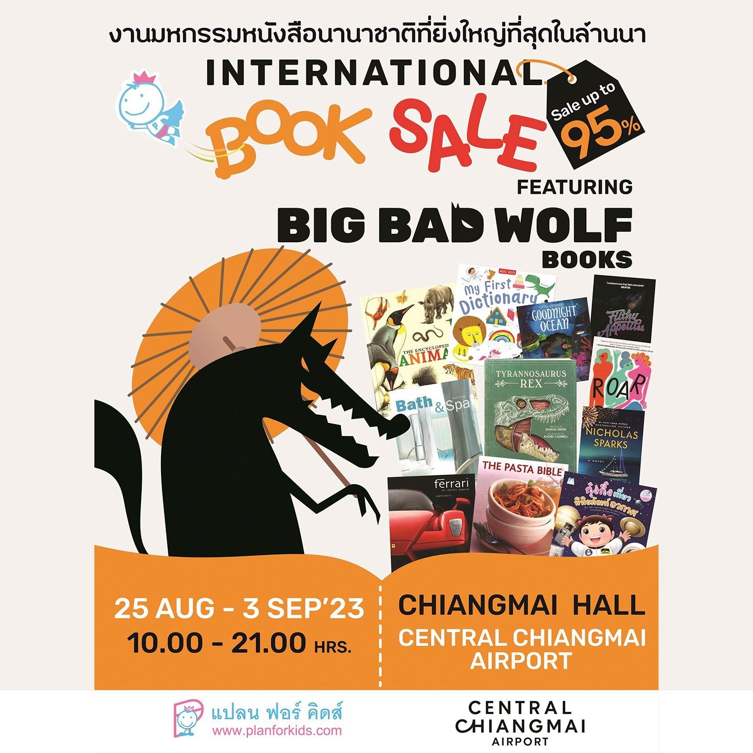 กลับมาอีกครั้ง! กับงานมหกรรมหนังสือนานาชาติยิ่งใหญ่ที่สุดในล้านนา “International Book Sale Feathering Big Bad Wolf Books” ตื่นตาตื่นใจไปกับกองทัพหนังสือกว่าล้ามเล่ม ลดสูงสุด 95%! พบกับหนังสือคุณภาพจากสำนักพิมพ์ต่างๆ ทั้งในยุโรป อเมริกา ออสเตรเลีย ครบทุกหมวดหมู่ เหมาะกับทุกเพศ ทุกวัย ตั้งแต่หนังสือส่งเสริมพัฒนาการเด็ก หนังสือประวัติศาสตร์ ชีวประวัติ บันเทิง กีฬา ท่องเที่ยว วรรณกรรม ตกแต่งบ้าน สถาปัตยกรรม งานอดิเรก ฯลฯ จากนักเขียน นักแปล ทั่วโลกมากกว่า 1 ล้านเล่ม พร้อมโปรโมชั่นสุดพิเศษ และกิจกรรมอีกมากมายภายในงาน