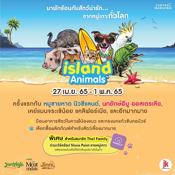 เตรียมพบกับความสนุกเพลิดเพลินได้บนเกาะแห่งนี้ กิจกรรมมากมาย อาทิ ใกล้ชิดกับสัตว์ที่หาชมได้ยาก จากต่างแดน, ป้อนอาหารสัตว์ และเลือกซื้อผลิตภัณฑ์สำหรับสัตว์เลี้ยง ในงาน Island Animals วันที่ 27 เม.ย. 65 - 1 พ.ค. 65 ณ ลานกิจกรรมชั้น 1 เซ็นทรัลมหาชัย