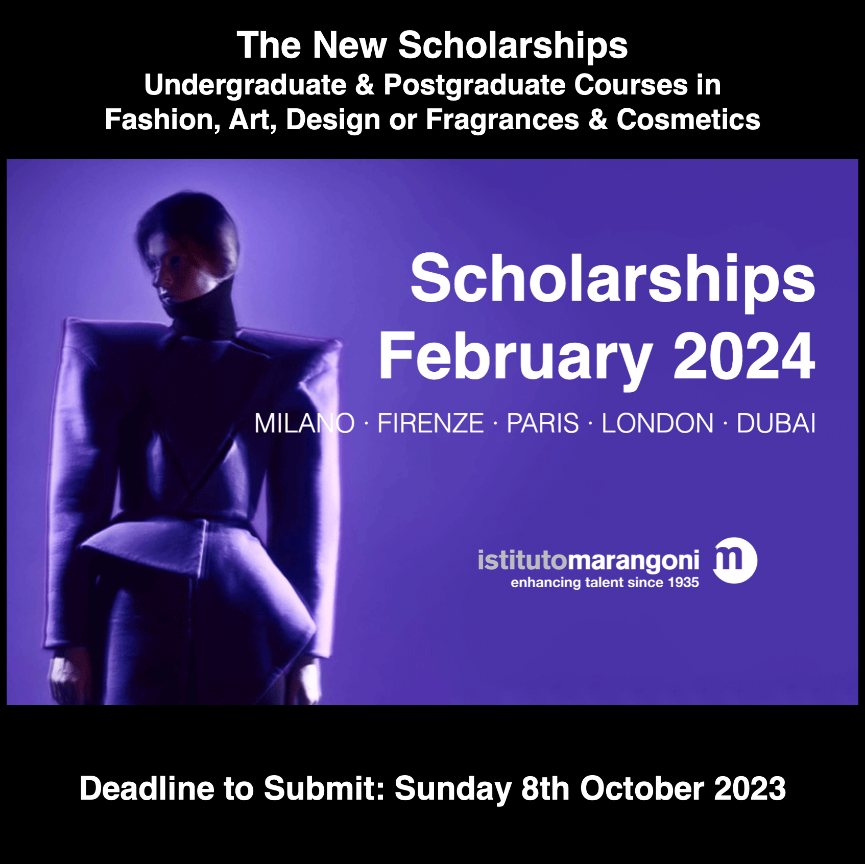 ผู้จัดการศูนย์ข้อมูลการศึกษาสถาบันอิสติตูโต้มารังโกนีประจำประเทศไทย มีความยินดีที่จะเเจ้งให้ทราบว่าทางสถาบันมารังโกนี เปิดรับสมัครชิงทุนการศึกษา เทอมกุมภาพันธ์ ปีการศึกษา 2567 (February 2024 intake) ในทุกหลักสูตรปริญญาตรี ปริญญาโทเเละหลักสูตรเร่งรัดเเบบ 1 ปี ในสาขาเเฟชั่น ศิลปะและการออกแบบ รวมถึงสาขาบริหารธุรกิจเครื่องหอมเเละเครื่องสำอาง ซึ่งมีรายละเอียดดังนี้ครับ