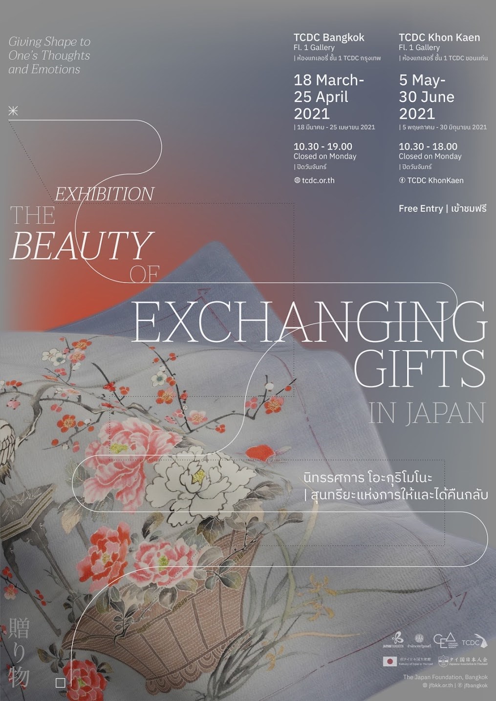 The Japan Foundation, Bangkok, in collaboration with Creative Economy Agency (CEA) via TCDC Bangkok and TCDC Khon Kaen are pleased to co-organize the traveling exhibition “The Beauty of Exchanging Gifts in Japan: Giving Shape to One’s Thoughts and Emotions” during 18 March – 25 April 2021 at TCDC Bangkok and 5 May – 30 June 2021 at TCDC Khon Kaen. This exhibition is the newest collection from the Japan Foundation and will remarkably set out its journey to Thailand as the first destination in the world.